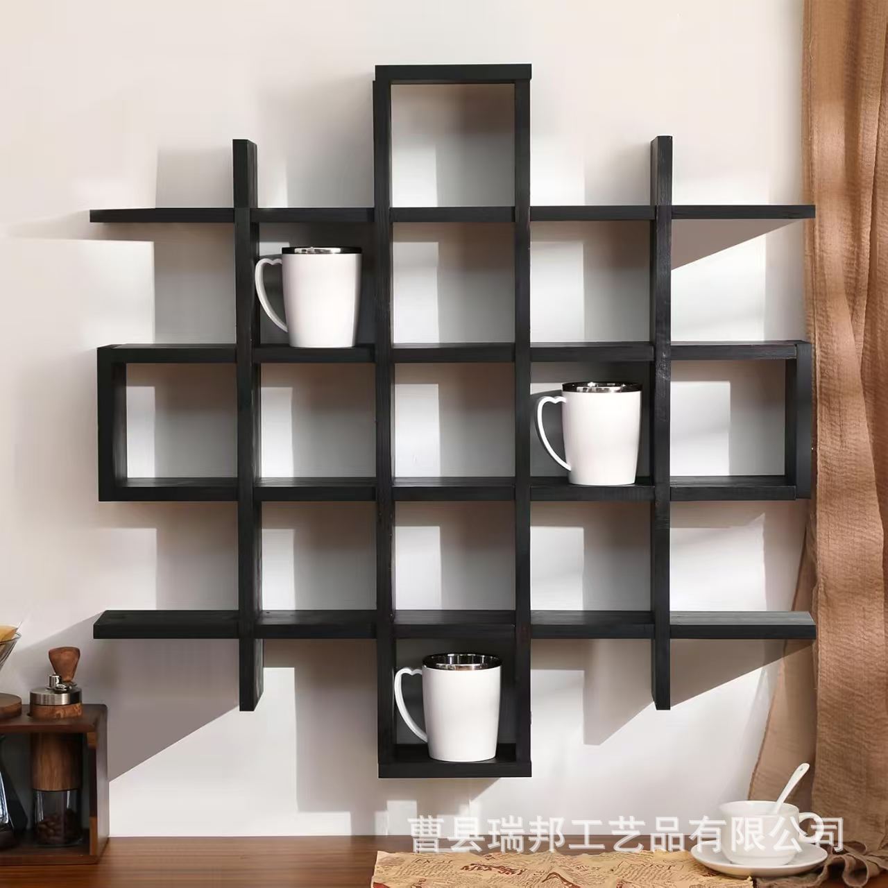 無垢材の壁収納ラック多層バブルマットモデルディスプレイラッククリエイティブ木製整理ラック小さなボーグラック