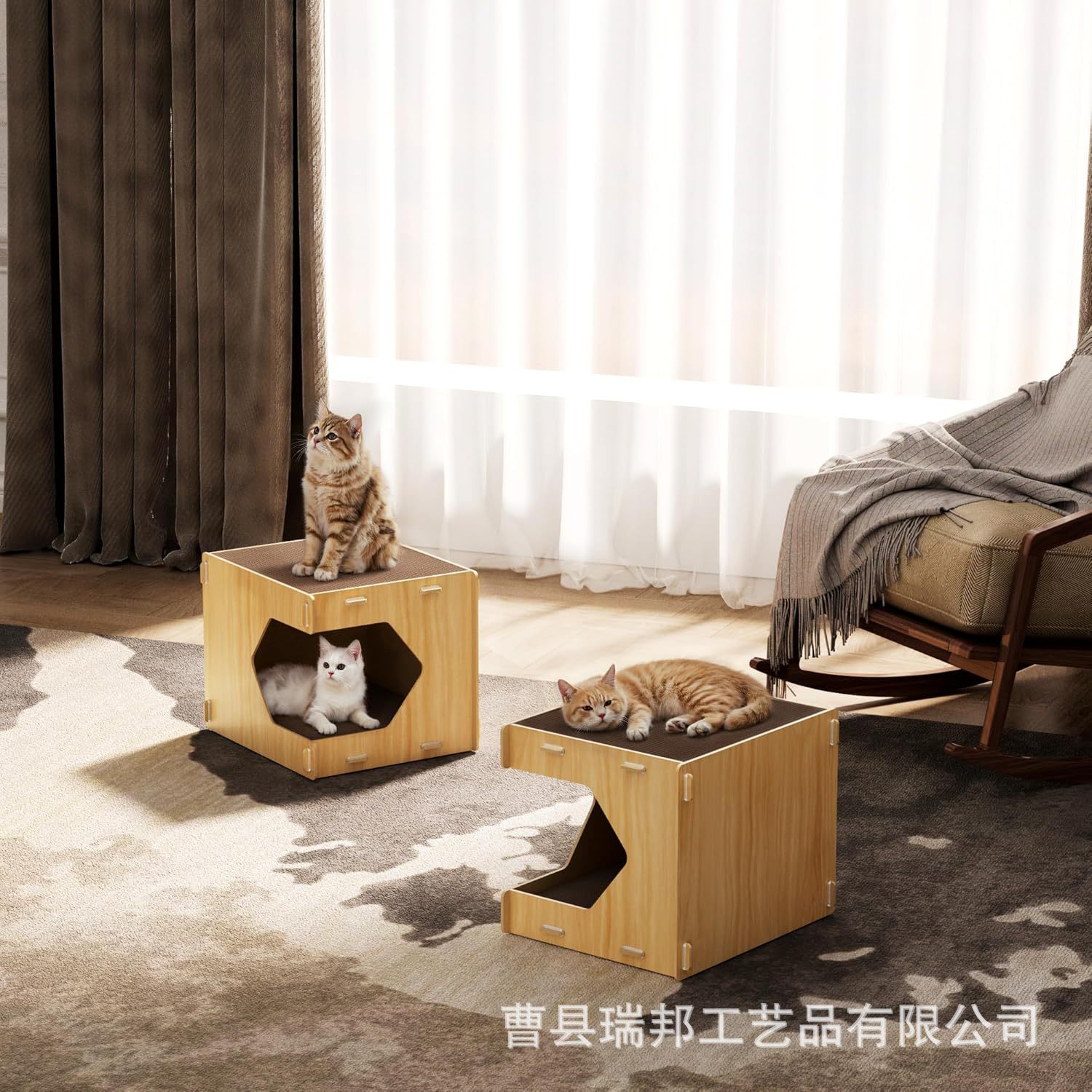 クロスボーダー木製猫の巣、段ボール猫スクラッチャー、スプライス可能な猫ハウス、ペットスクラッチボード、無垢材ペットの巣