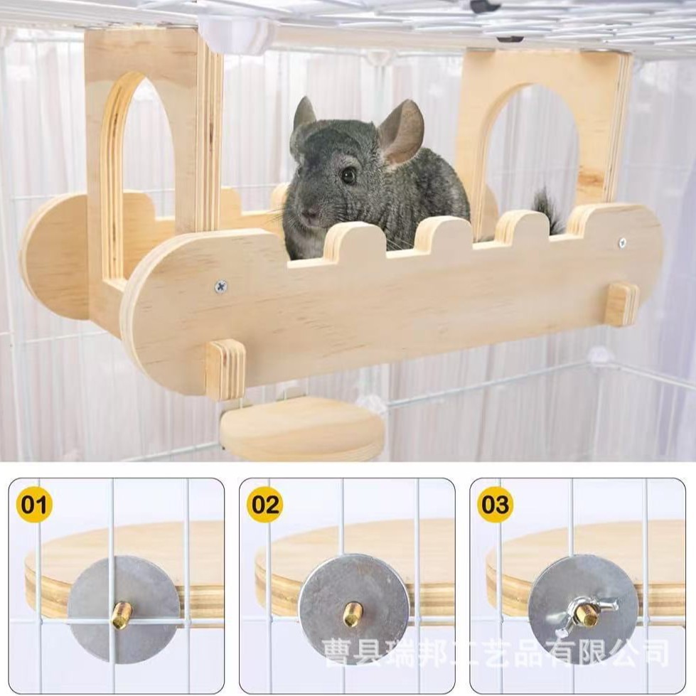 無垢材のハムスターケージハンガー、チンチラとリスのハイキングステージ、クリエイティブな吊り下げ装飾、木製のハムスターのハイキングステージ