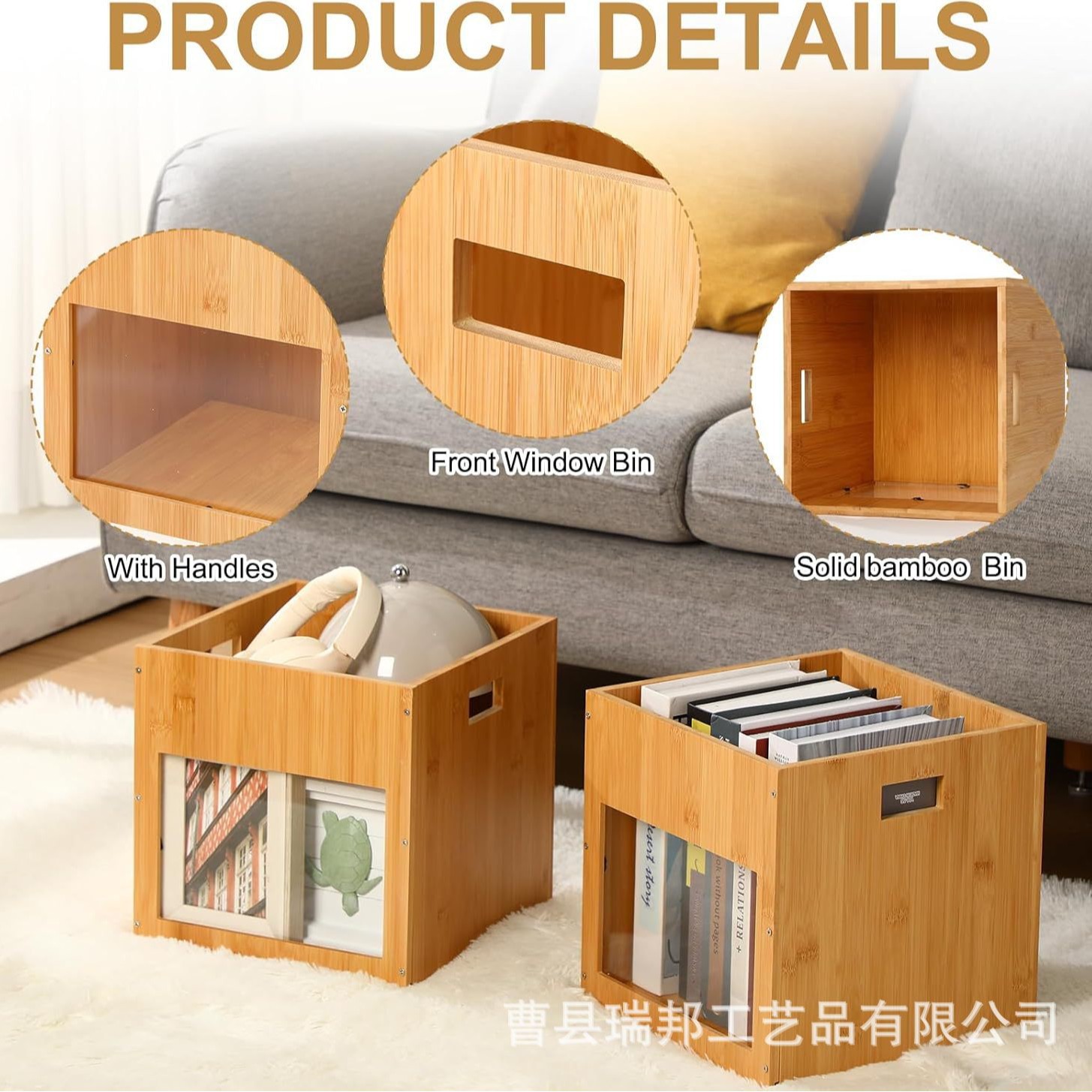 アクリルガラスオーガナイザー付きクロスボーダー無垢材収納ボックス正方形木製レコードブック収納ボックス