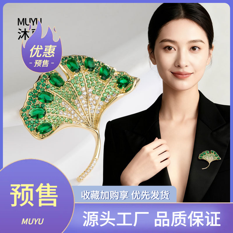 ファッションの優雅なイチョウの葉のブローチ中国風の百合の胸の花の小さい大衆の設計のスーツのコートのピンの個性の装飾