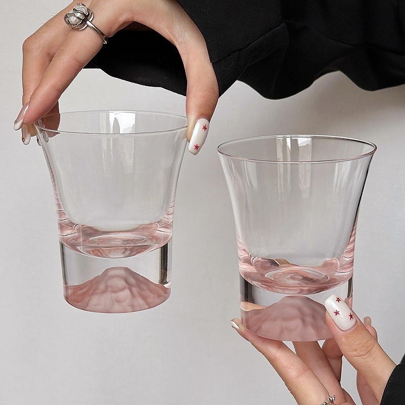インスタ风富士山杯ピンク山脉観山杯コーヒー高级感グラスウイスキーグラスワイングラス