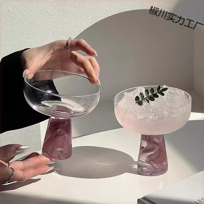 高颜值小众云雾粉女生微醺酒杯创意高脚杯香槟杯玻璃杯杯