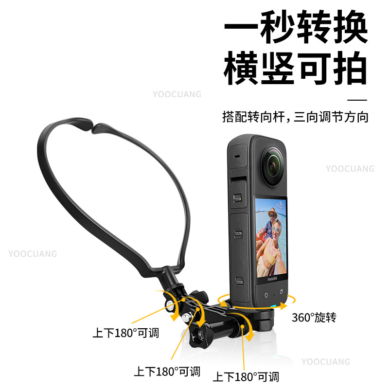 Touch 360x4x3首掛けスタンドの首輪を適用して、一人称視点の影石x 3部品を撮影します。
