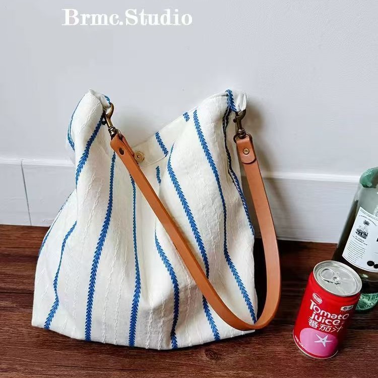 白日夢長オリジナル夏ジャカードブルーストライプのトートバッグ
