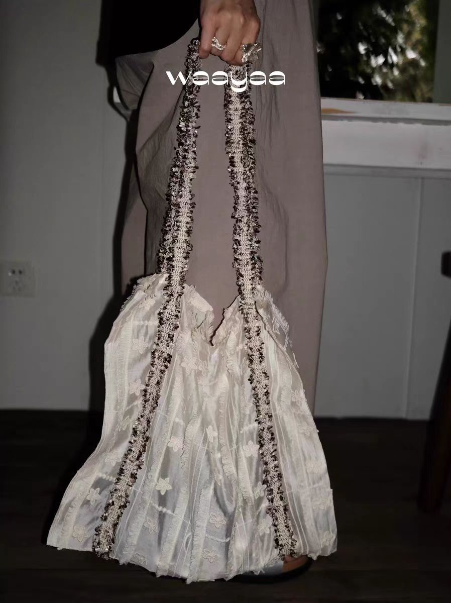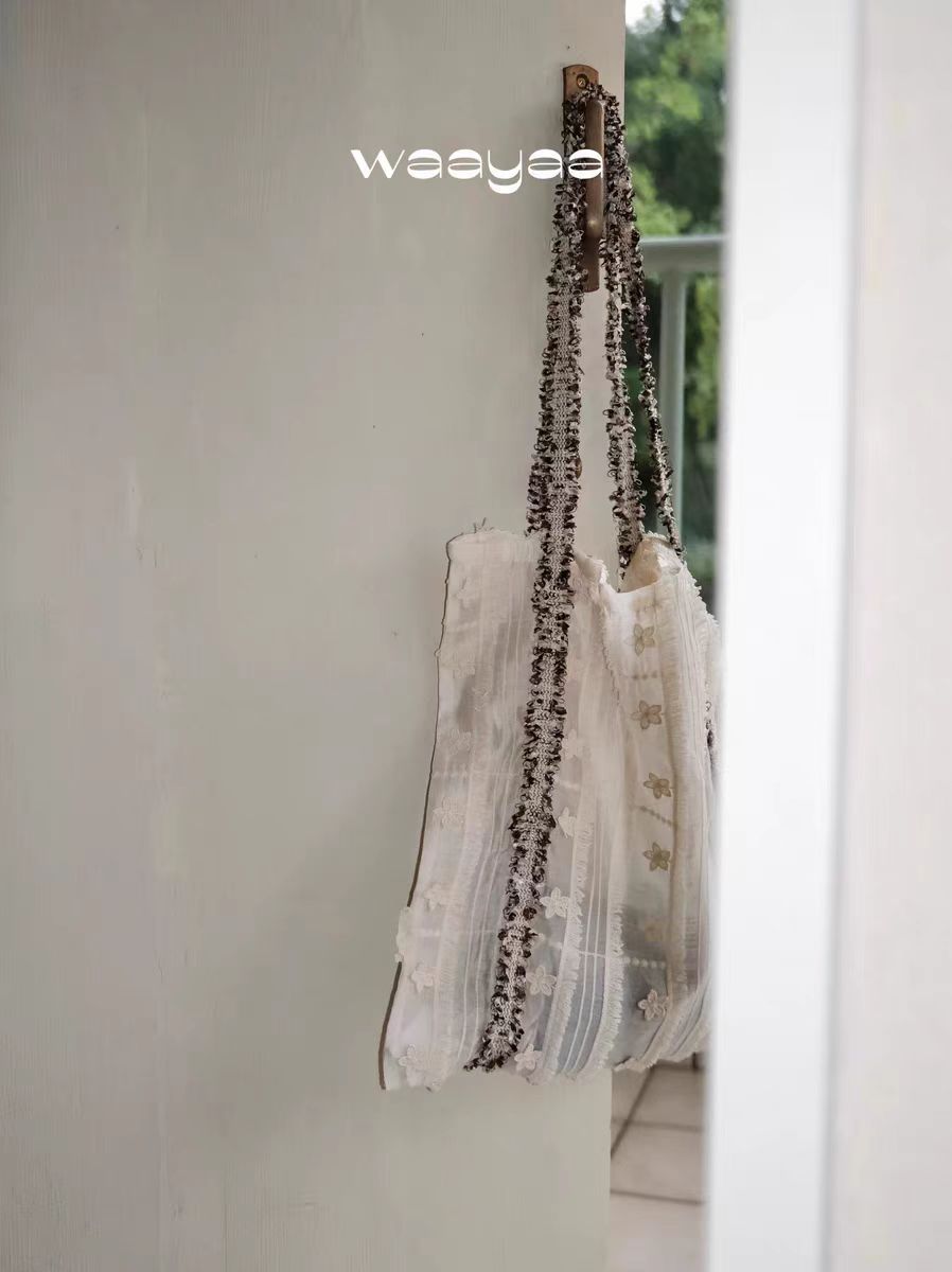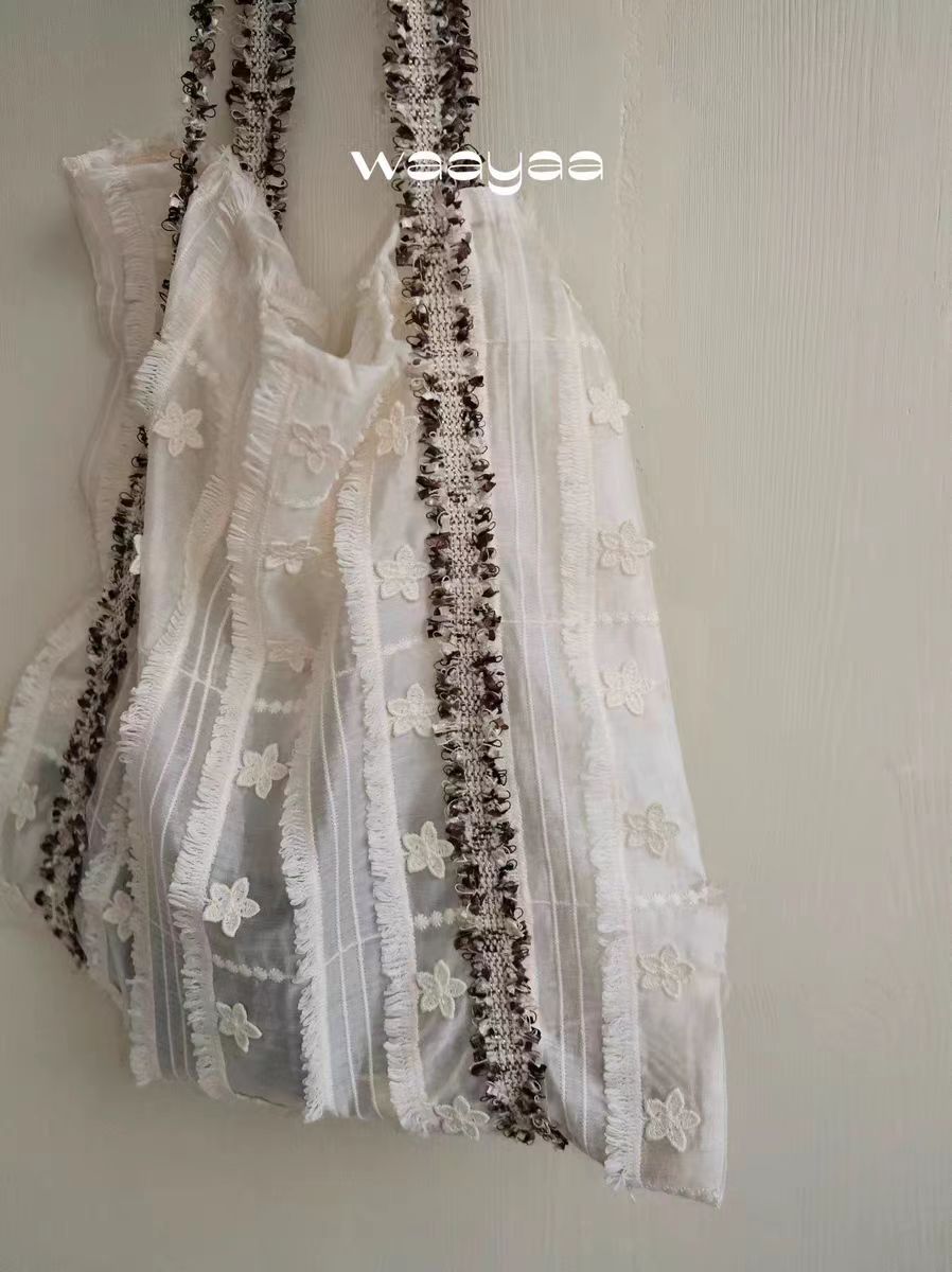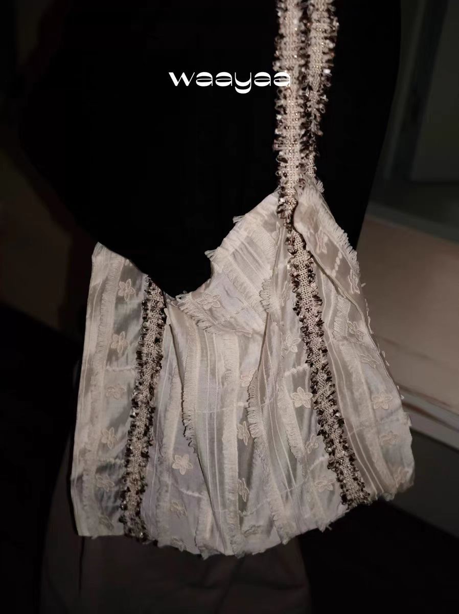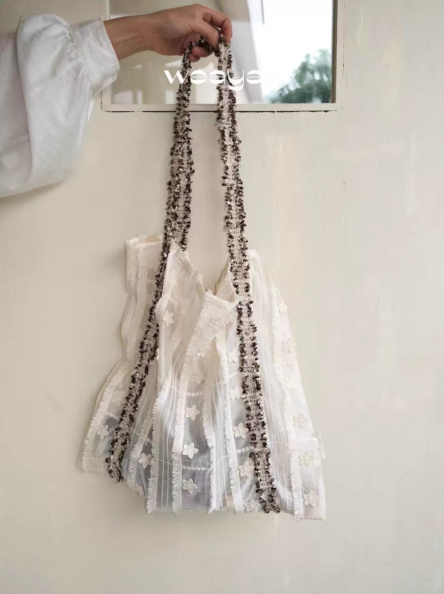 2025早春小衆デザイン花リボン筋理感夏キャンバス大容量ショルダーバッグ携帯バッグ