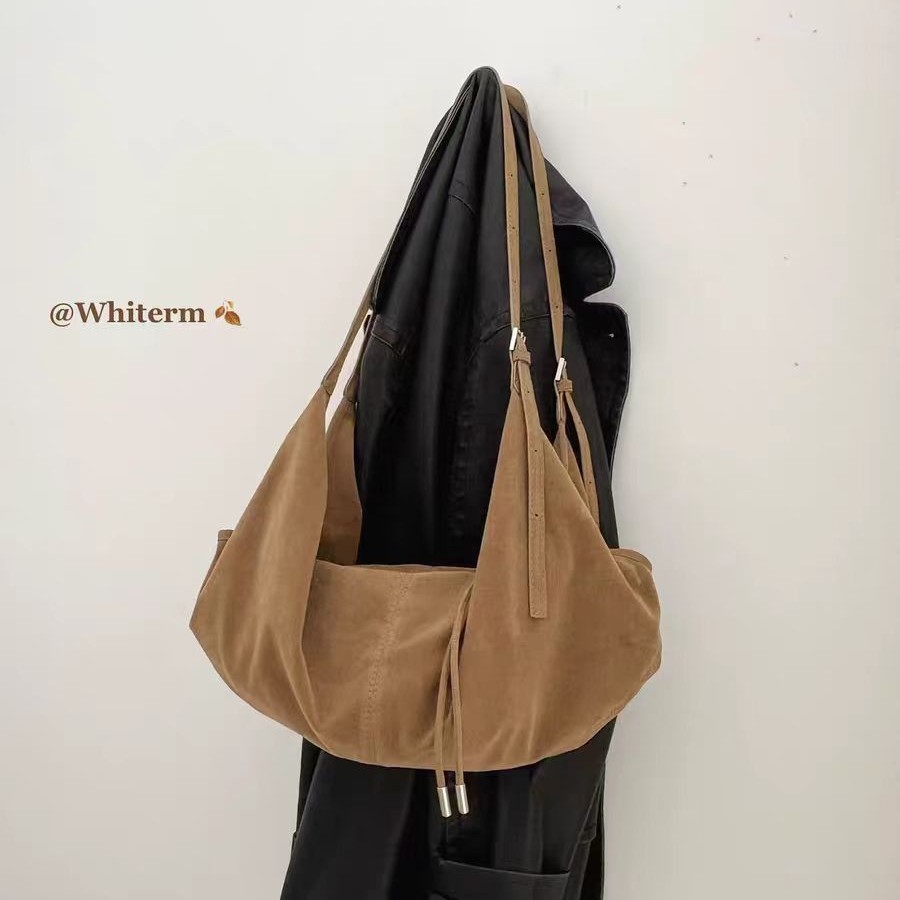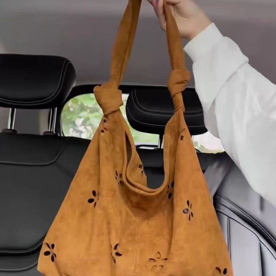 韩系慵懒风麂皮绒镂空腋下包包女式2025新款复古大容量单肩托特包