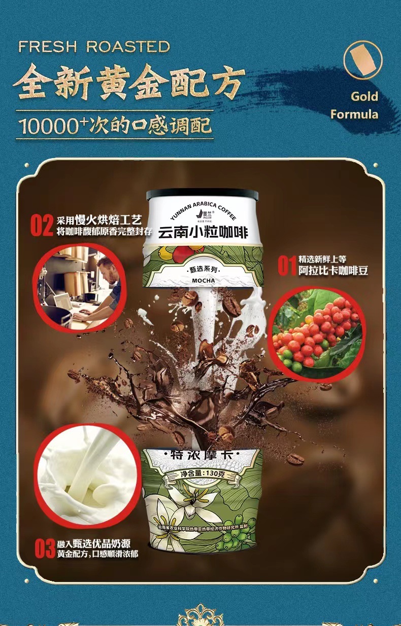 云南小粒咖啡三合一旅游爆款景兰咖啡130g罐批发景区同款速溶咖啡