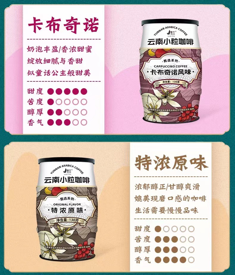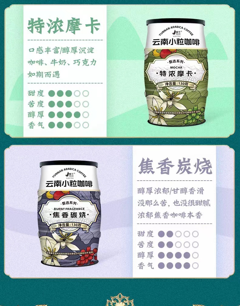 雲南小粒コーヒー景蘭缶130グラム味セット特産インスタント炭焼き焦げ香