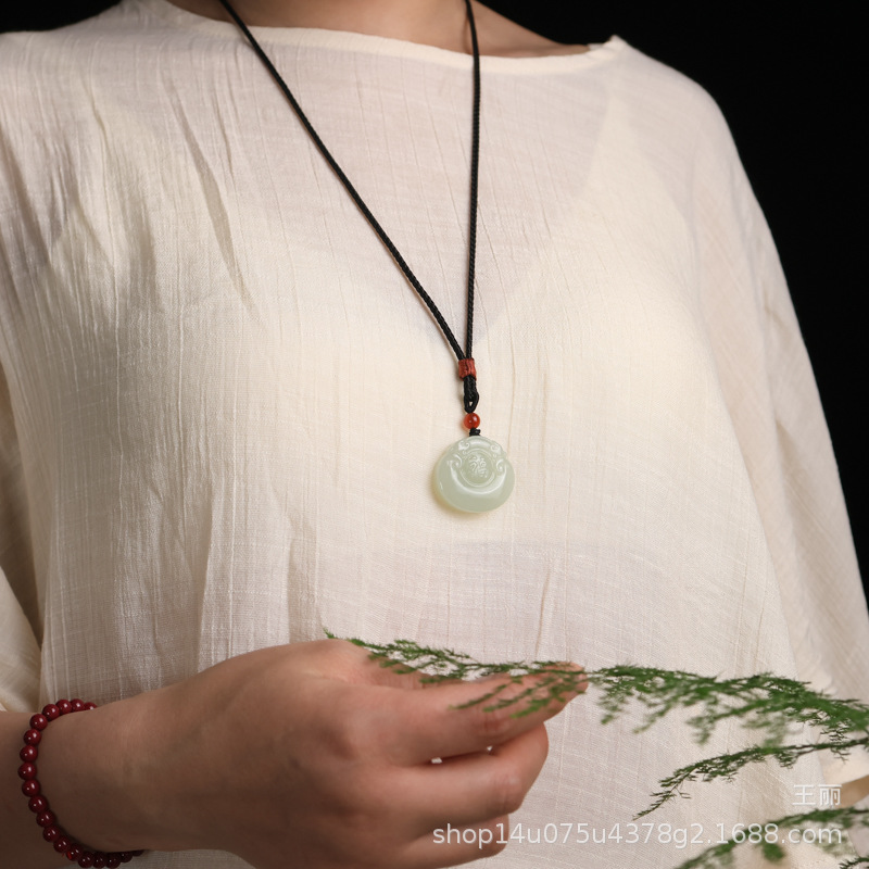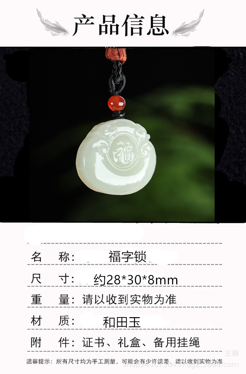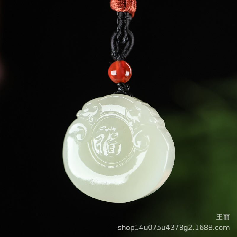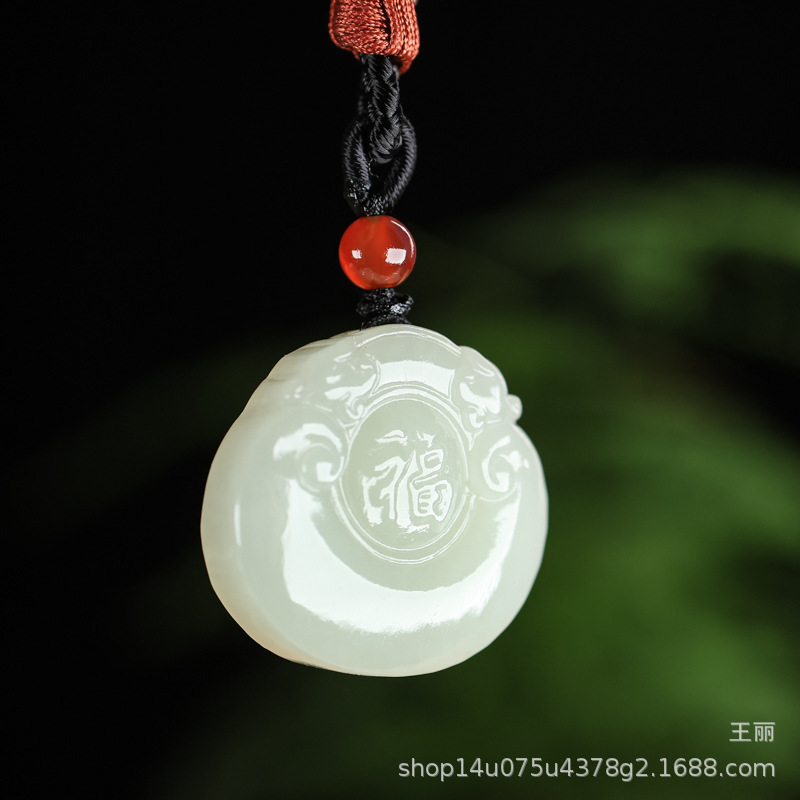 天然和田玉福錠ペンダント男女宝錠玉ペンダント子供福字錠玉ネックレス玉佩