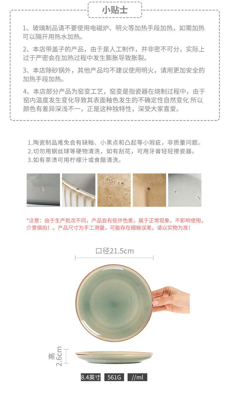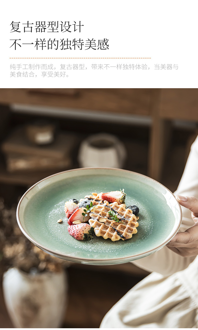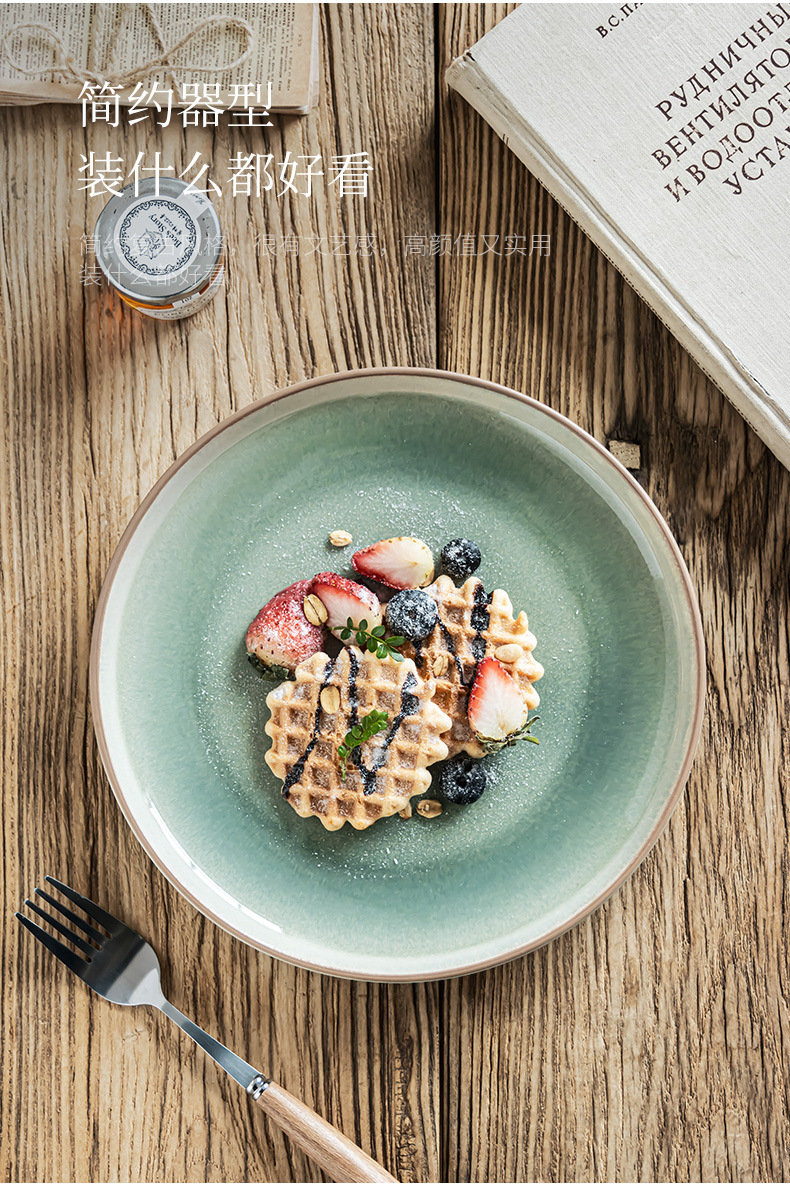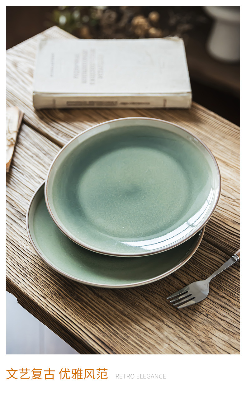 复古窑变陶瓷餐盘家用餐厅圆形浅盘沙拉盘甜品盘餐具批发盘子菜盘