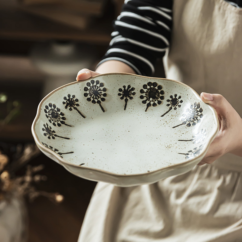 丸皿 和風大皿 窯変セラミック皿 深皿 家庭用丸皿 朝食皿 サラダ皿 ディナープレート
