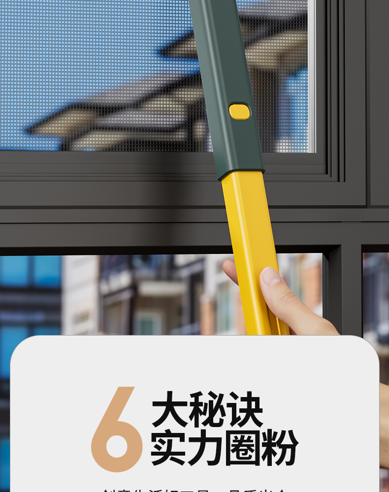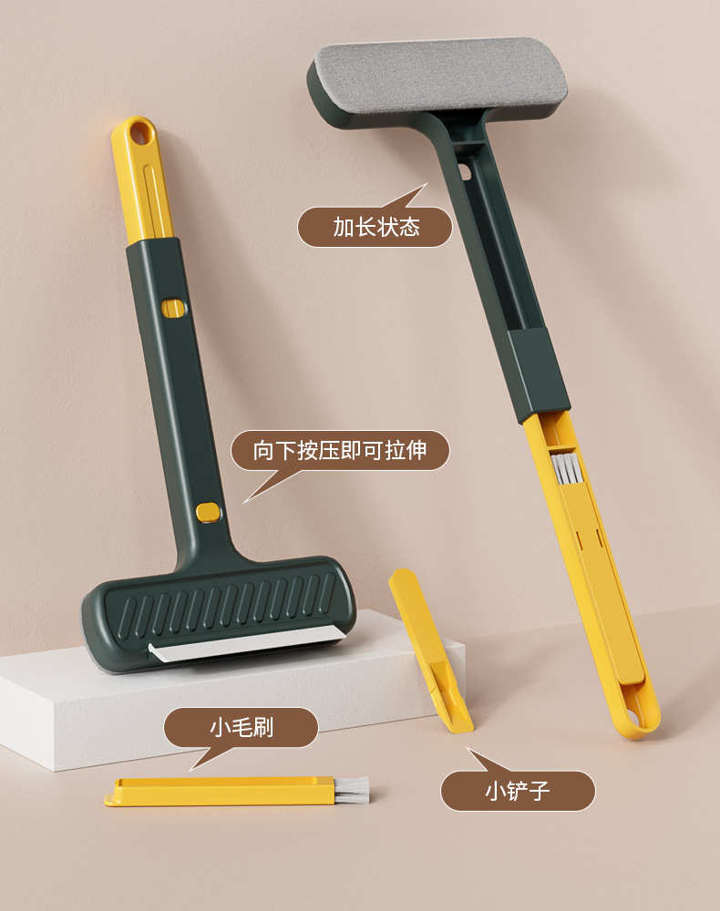 多功能新款手柄可伸缩纱窗清洁刷玻璃清洁刮水器可拆卸手柄除尘刷