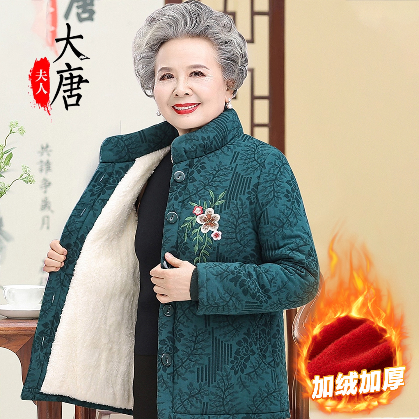 冬装新款妈妈装奶奶装棉衣时尚加绒加厚保暖老年棉服女冬装棉袄女