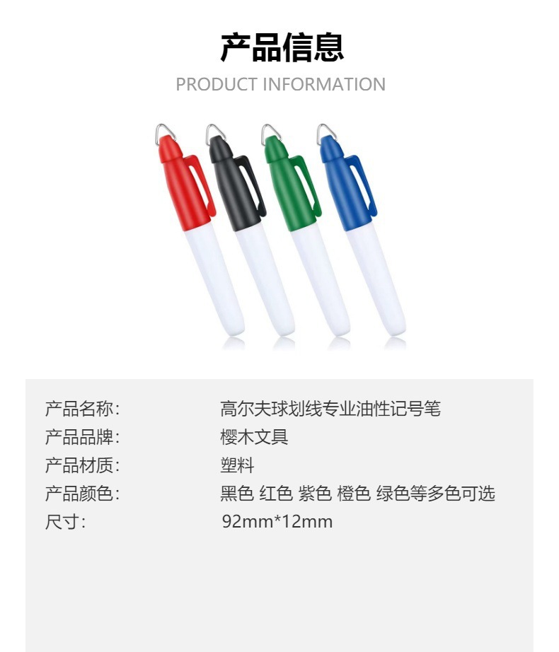 9色挂钩铁钩油性记号救护车专用笔可灰色笔杆高尔夫球画线笔创意