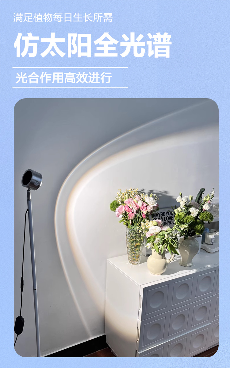 フルスペクトル植物育成ライト 室内バルコニー用 模擬太陽光 花や野菜の鉢植え専用育成ランプ 色の発色促進