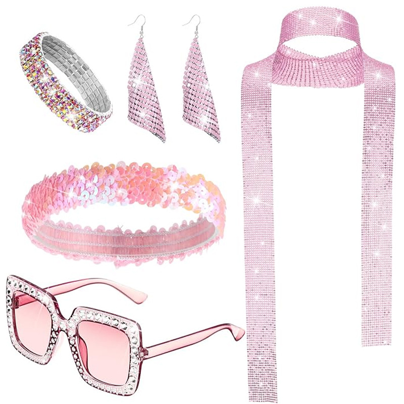 70年代ディスコアクセサリーレディース服ジュエリーディスコピアススパンコールスカーフサングラスダイヤモンドブレスレット