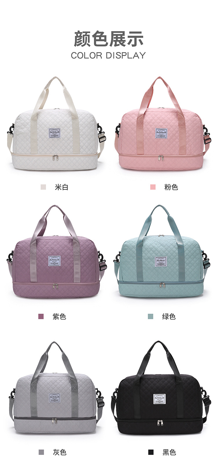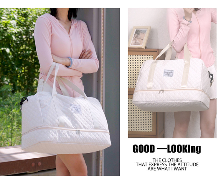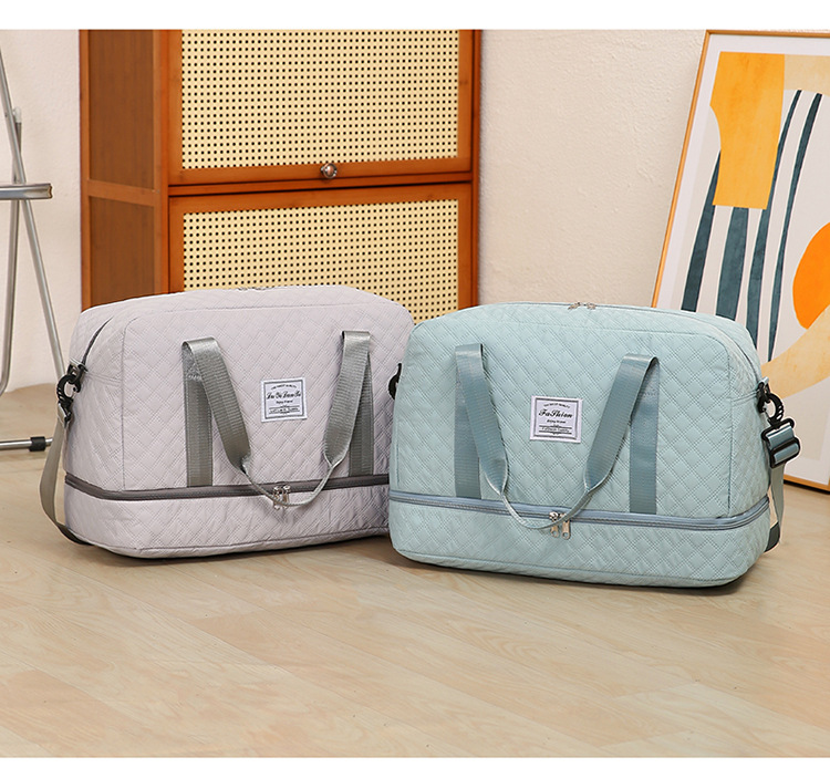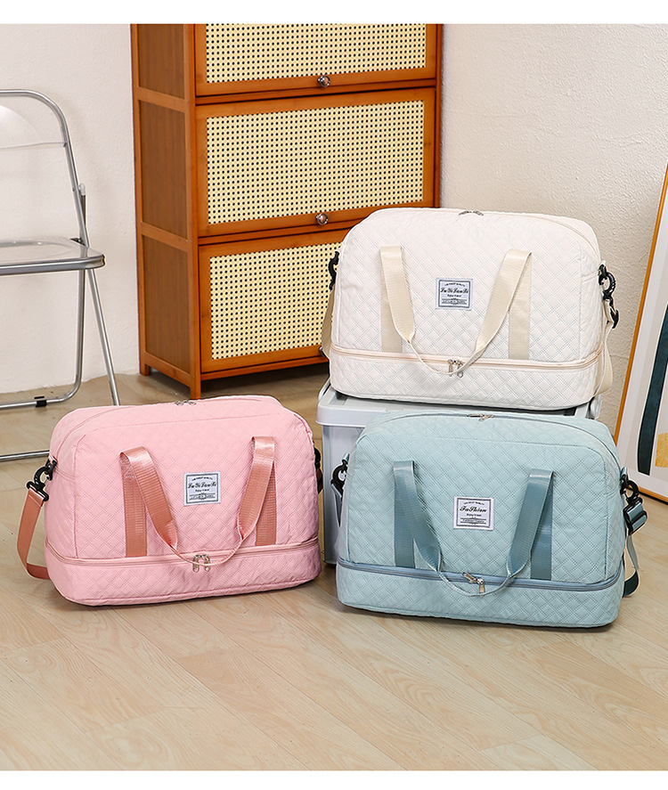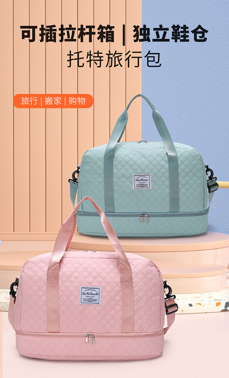 健身包菱格纹干湿分离运动旅行包手提包大容量健身包休闲待产包女