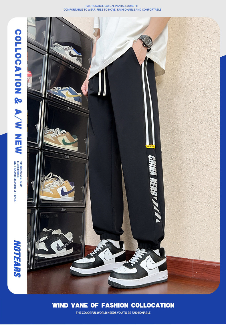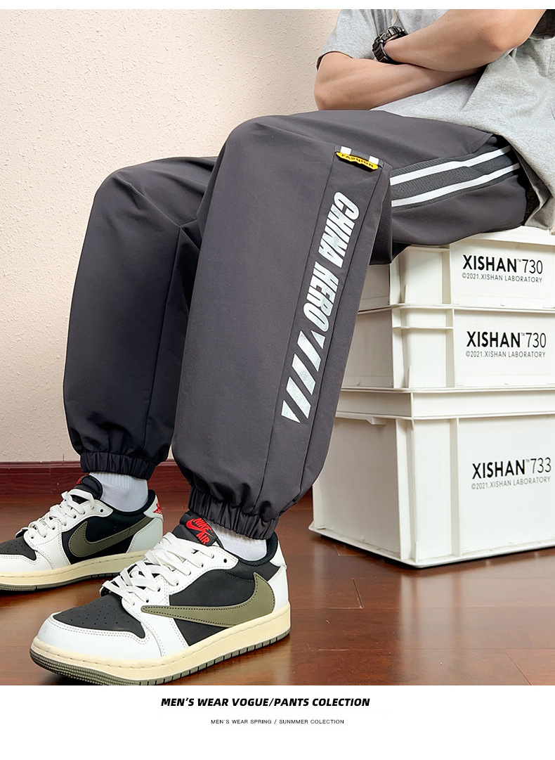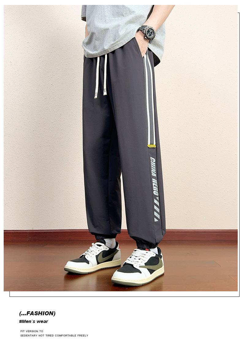 氷のズボンの男性の夏の薄い金のゆったりしたまっすぐな筒の広い足の垂れ下がった感のズボンのスポーツの速乾のレジャーのズボン