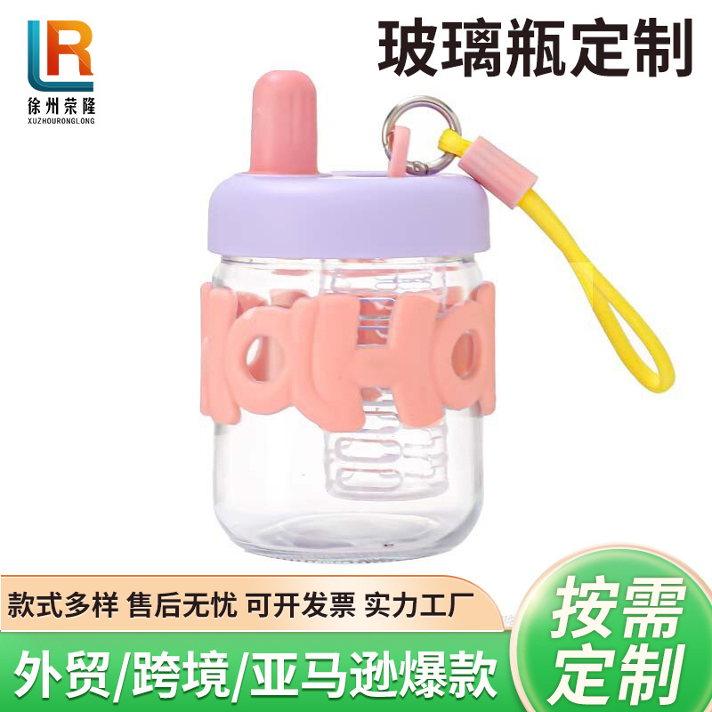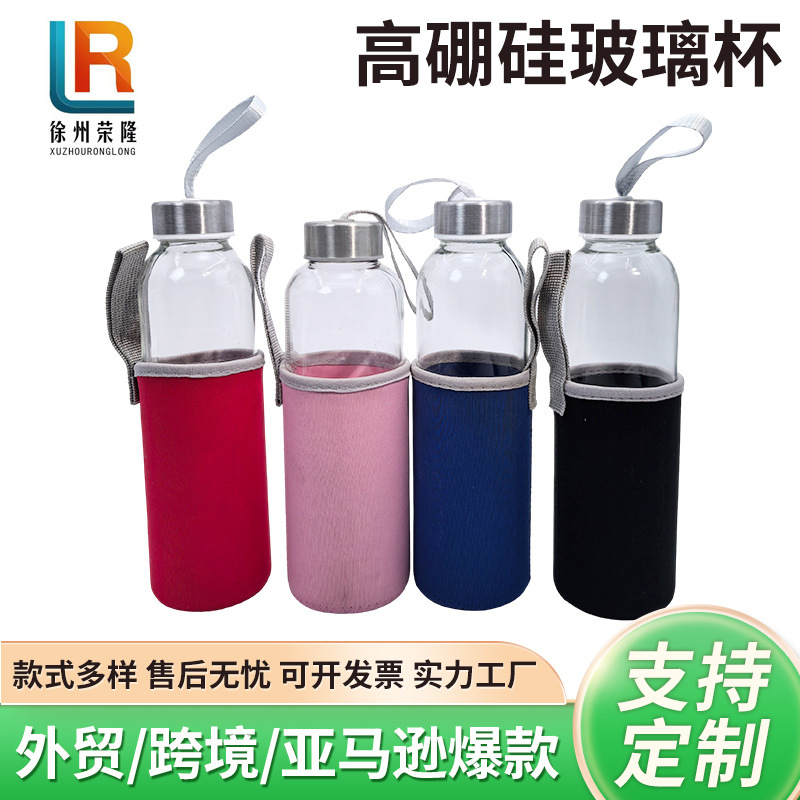 跨境透明杯子印刷logo礼品杯便携提手水杯带杯套杯子玻璃杯玻璃