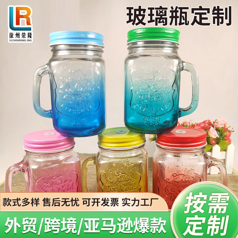 グラデーション文字ハンドルカップ480mlクリエイティブカバー付きグラデーション色ガラスカップ