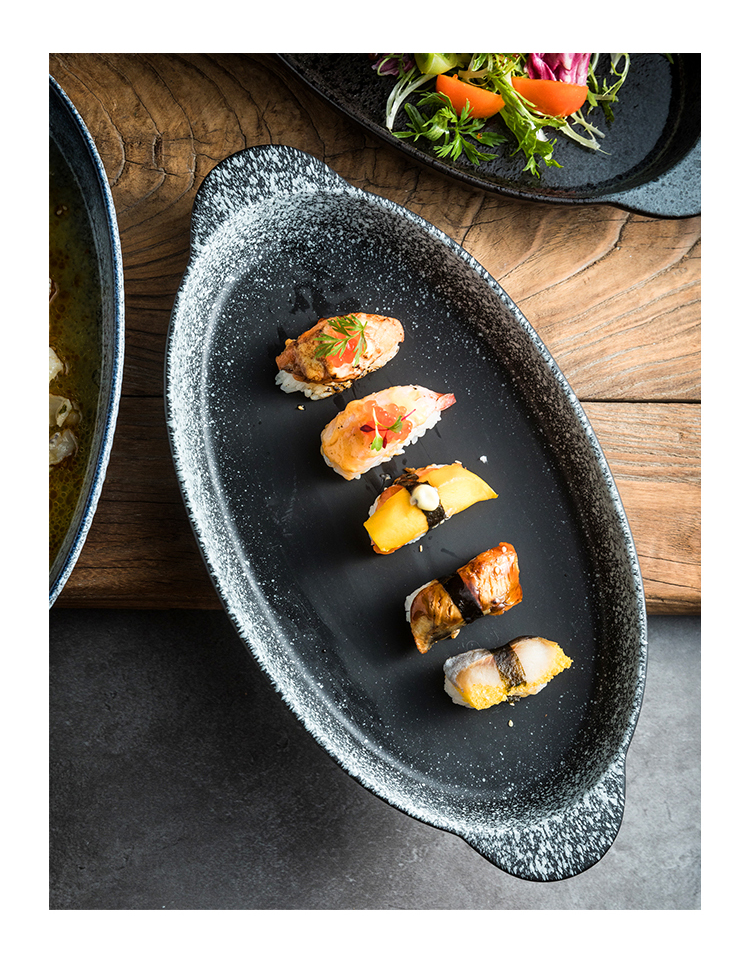 高颜値洋食皿両耳チーズサラダ皿陶磁器家庭用魚皿餃子皿腸粉皿凉粉生漬け皿