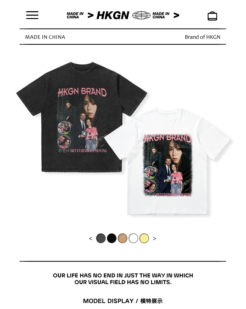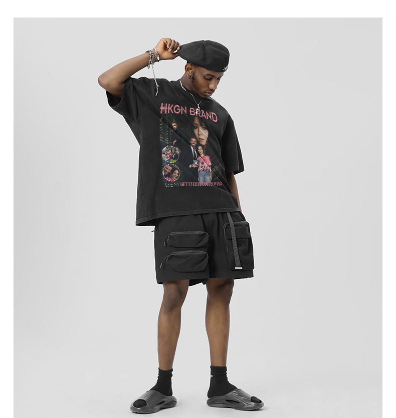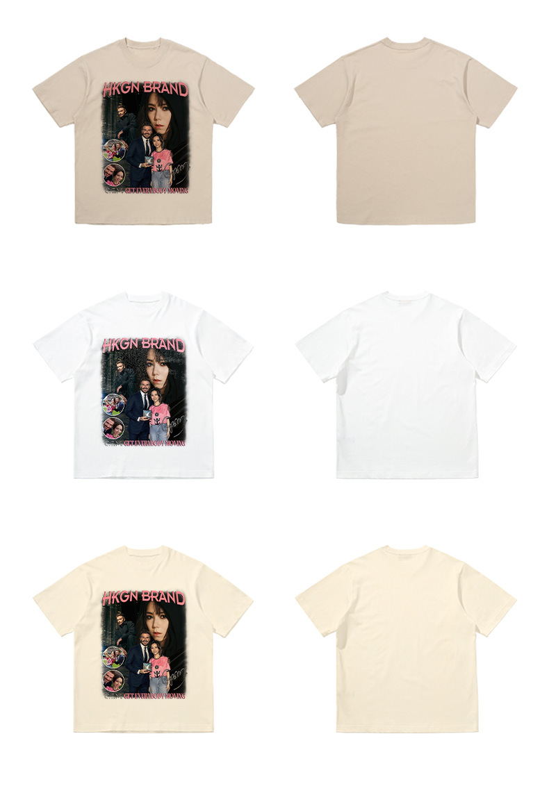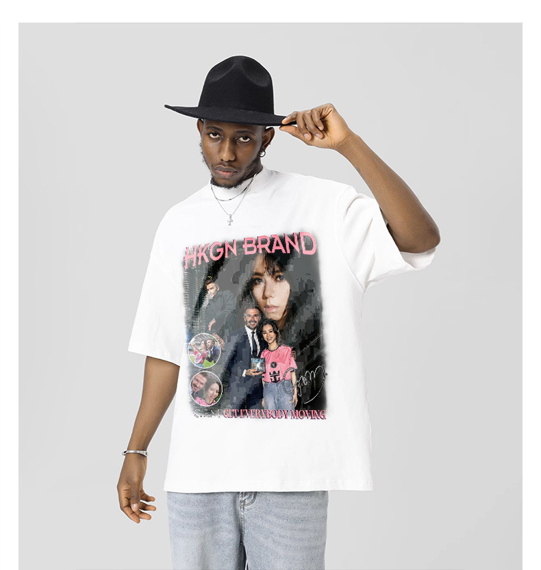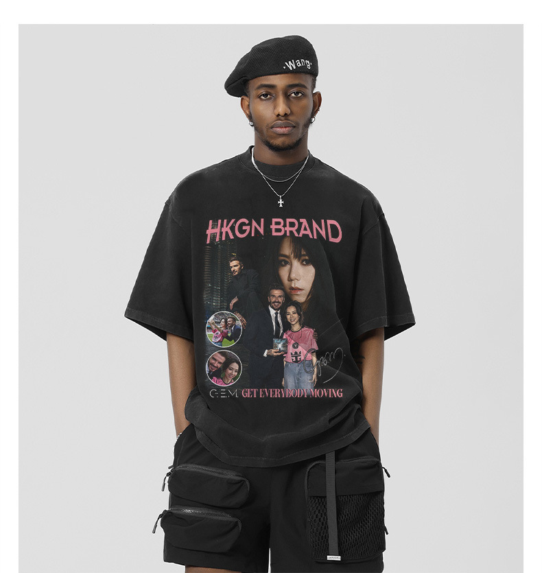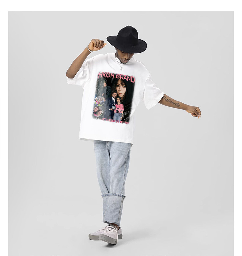 コービーkobeはデジタル直噴プリントのアメリカ式の小さい襟元の半袖の復古の古いゆったりしたtシャツのようです。