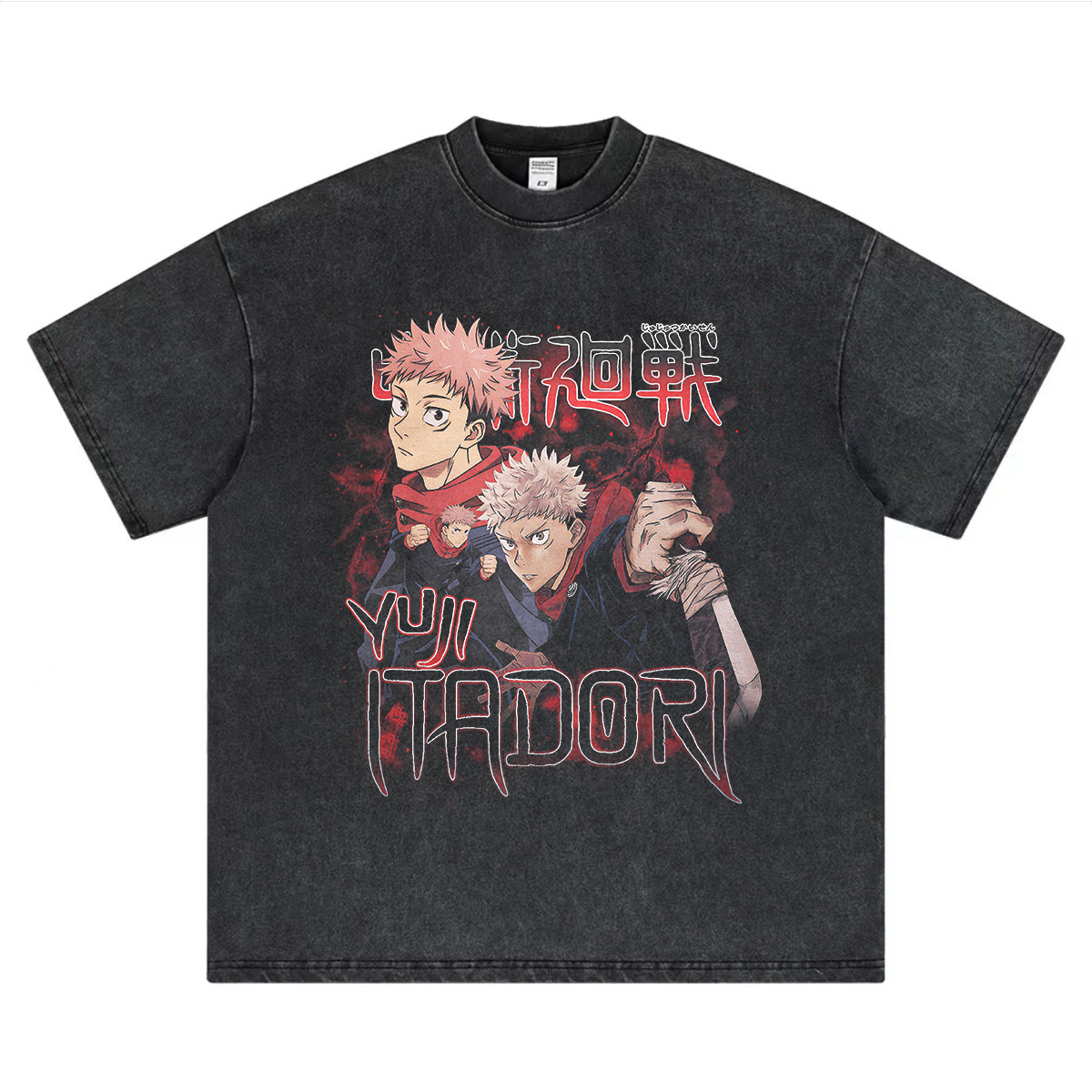 呪術回戦膨張相デジタルプリント重ポンド半袖アメリカ式小襟元ゆったり水洗いして古い半袖を作ります。