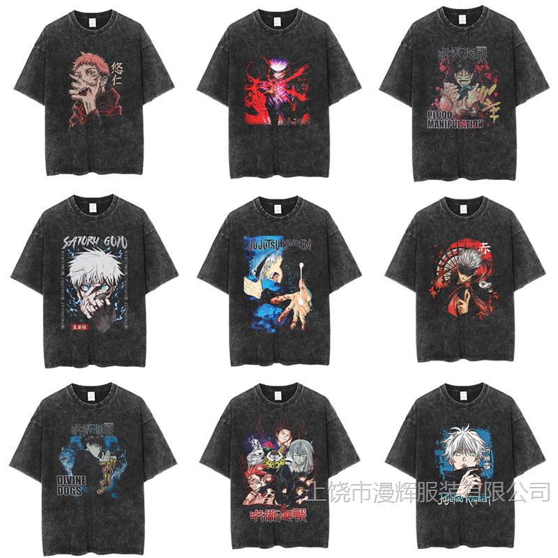 七街巷水洗いレトロtシャツ潮アニメ呪術回戦五条悟夏男女半袖t-おい