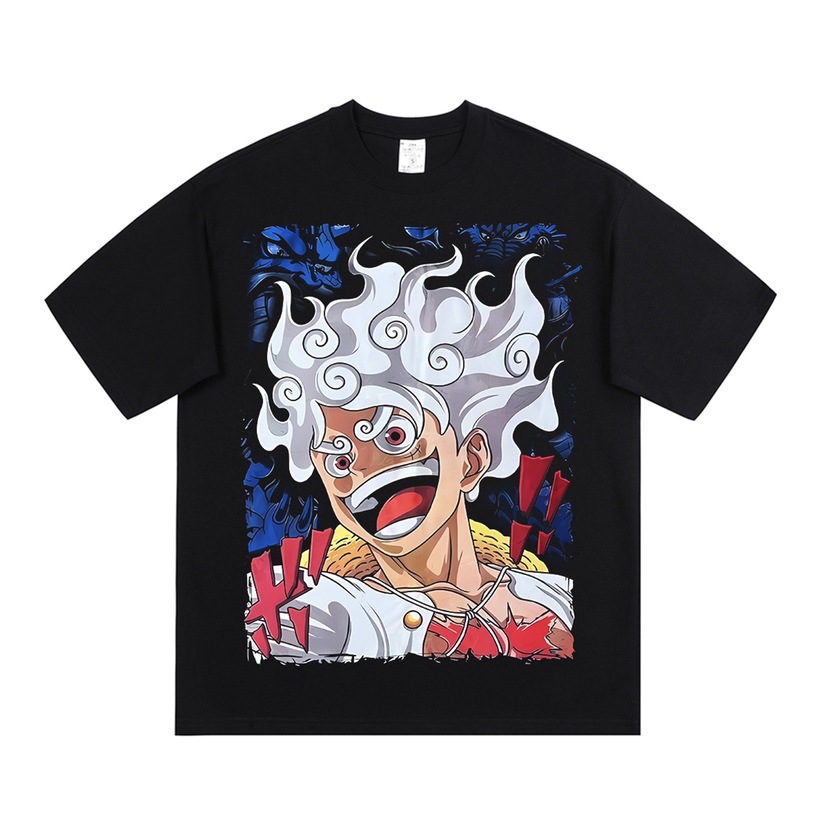 日漫海賊王路飛5段デジタルプリント半袖重ポンドtシャツ男女同タイプの小さい襟元がゆったりしています。