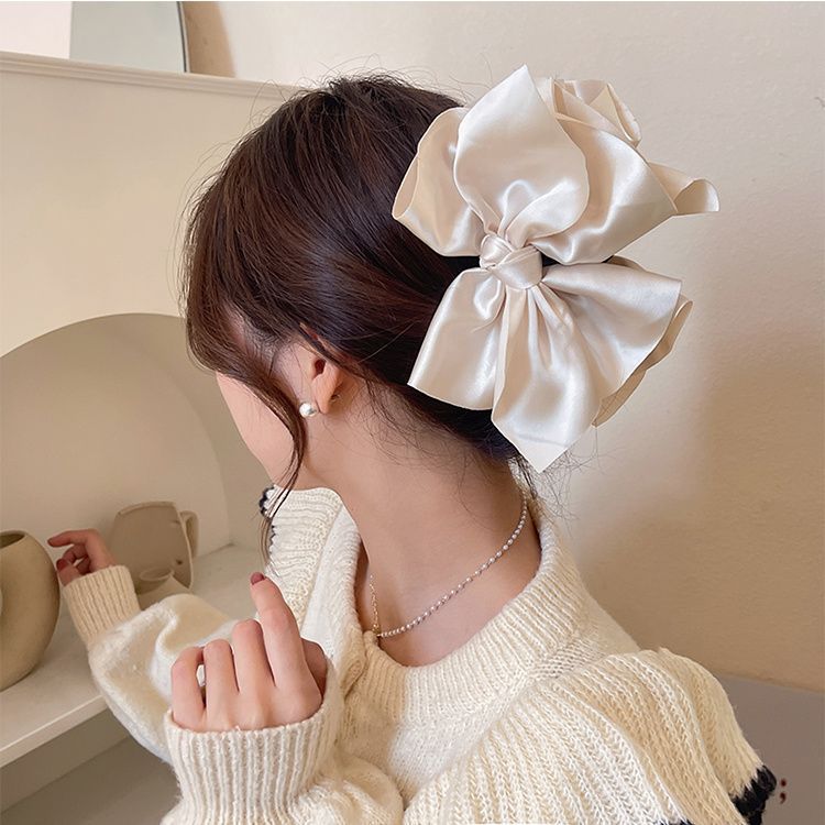工場直売の大きな蝶結びがとても目立つです。サテンの白い髪でサメを捕まえます。