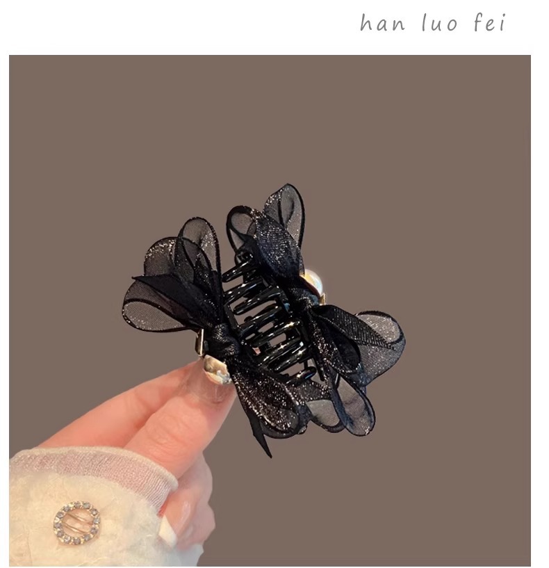 韓国系網紗花つかみ高級感バナナクリップ後頭部ヘアクリップシャーククリップ半髪飾り