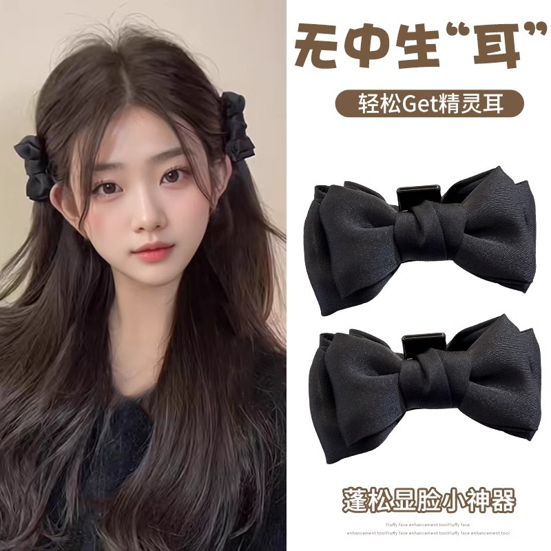 工場直売の王女の頭の黒色の蝶結びは女性のヘアピンの精霊の耳のピンの耳の後ろのサイドクリップの頭飾りをつかみます。