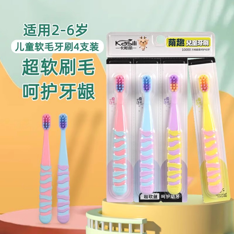 Kasili 子供用歯ブラシ スーパーソフト毛 3-6-12 歳の歯肉保護と歯の交換期の赤ちゃんの手動歯ブラシ