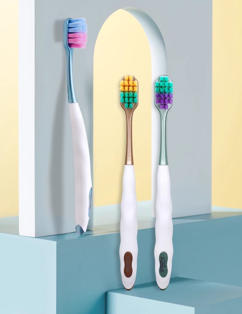 三支装罗马柱樱桃熊山型成人凸面细软毛牙刷护龈家用小头批发