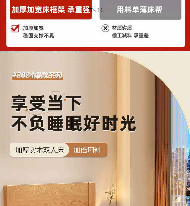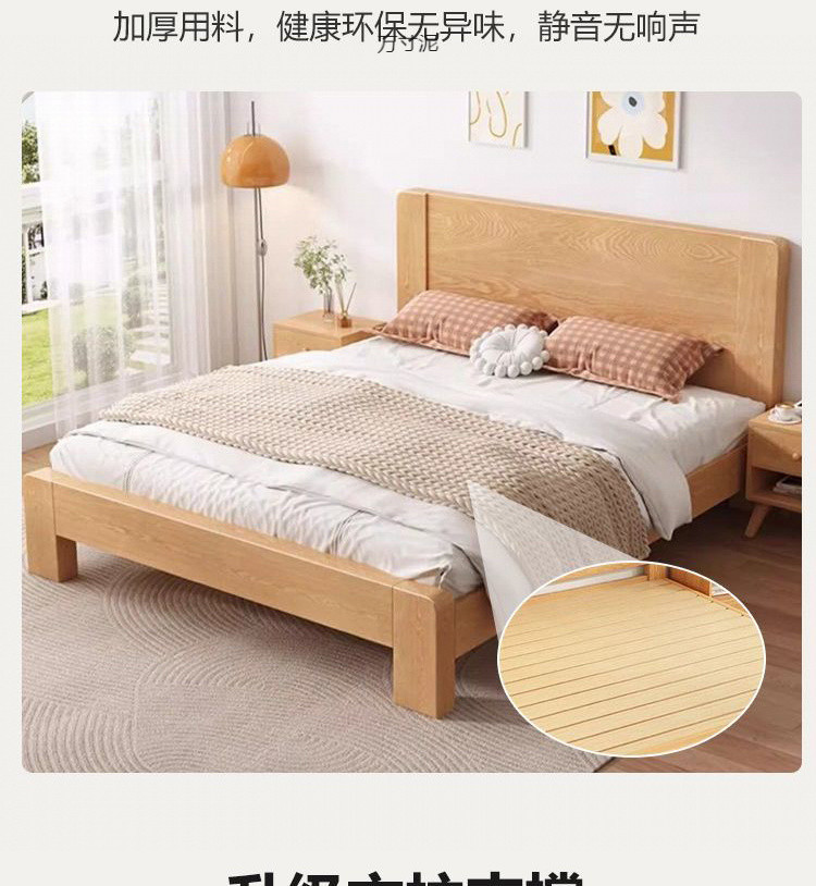 实木床现代简约家用1.5米主卧双人床出租房用储物大床1.8单人床架