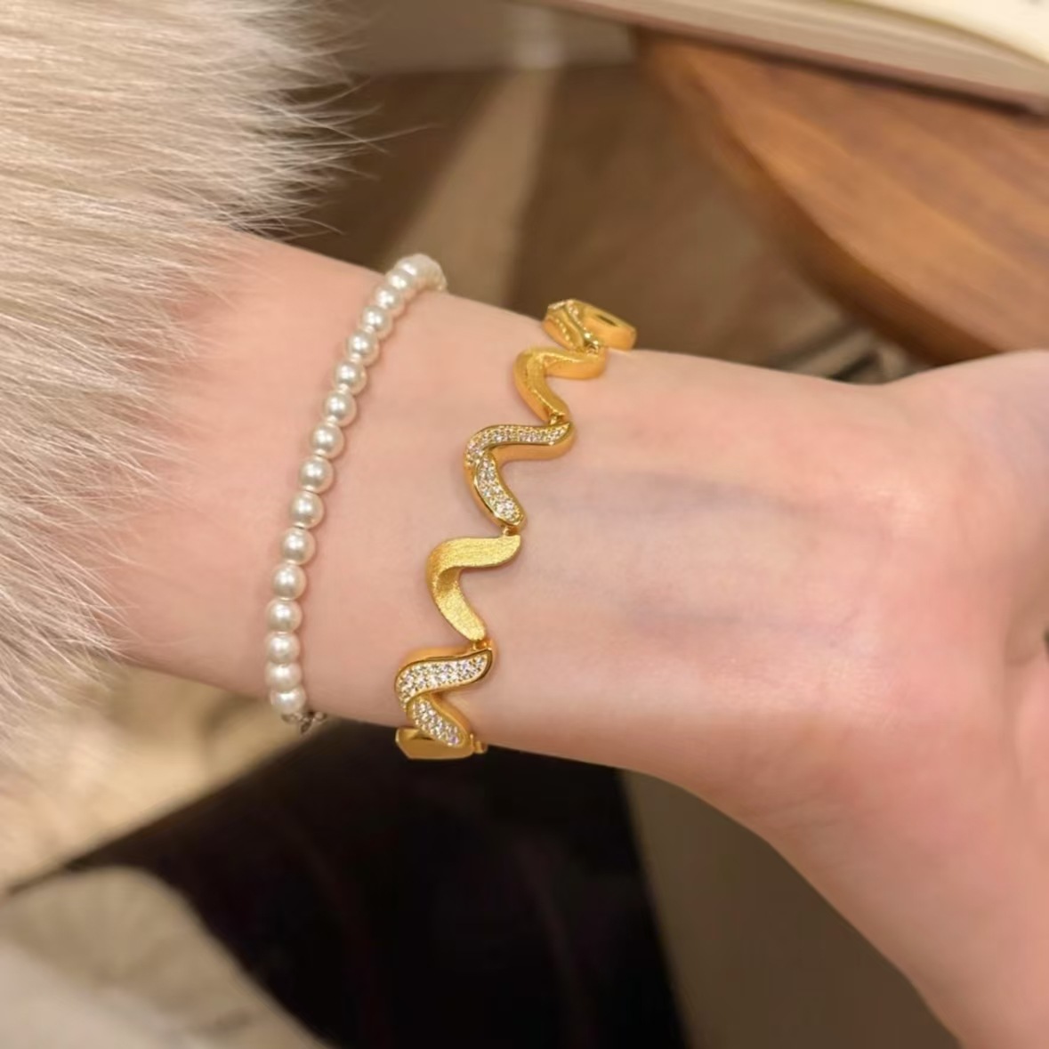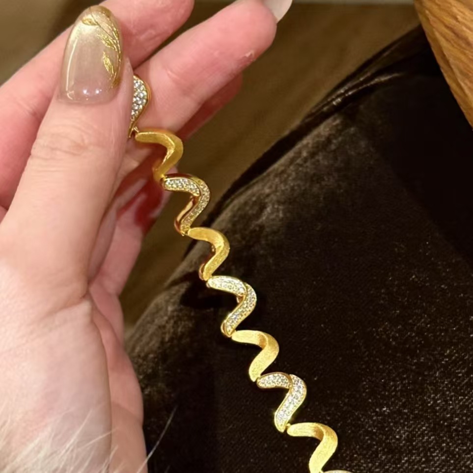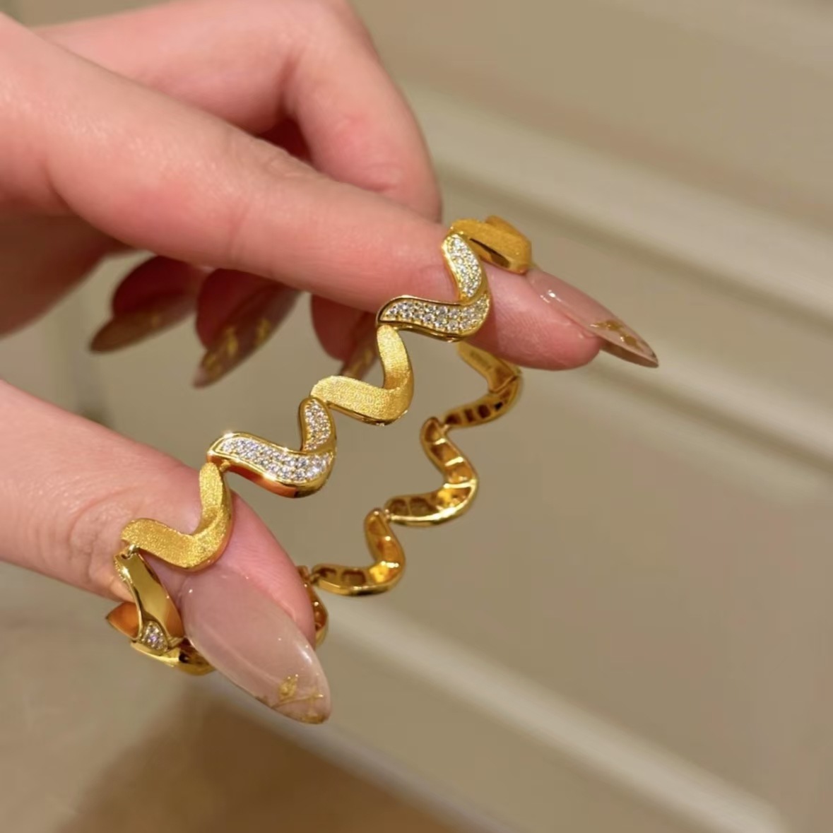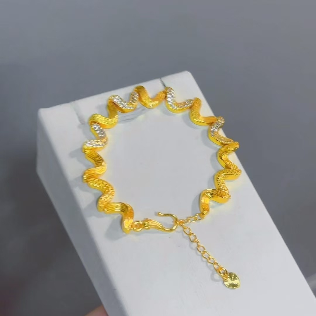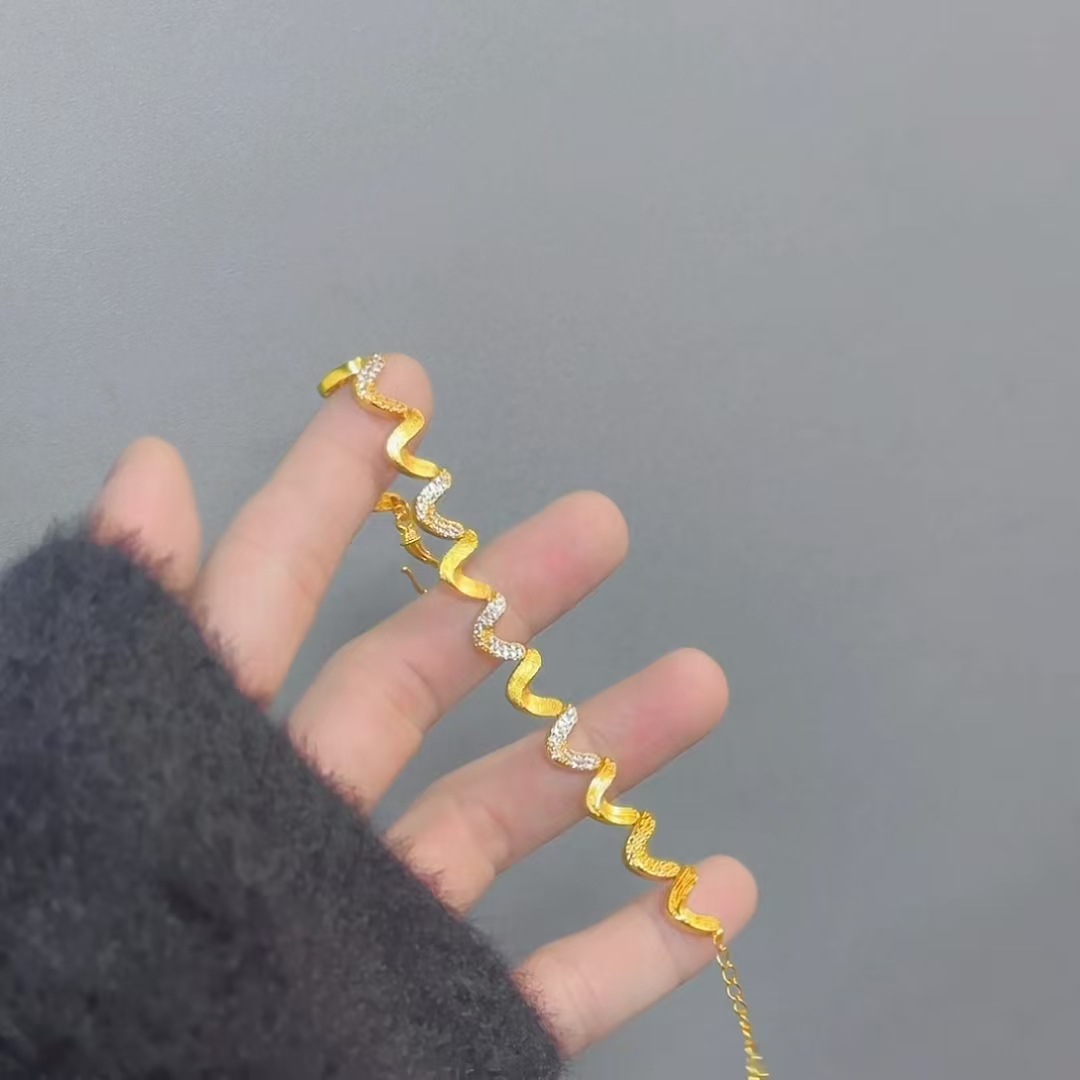 沙金拉糸はダイヤモンドの波のブレスレットを入れて、黄金色の水の波紋のブレスレットは軽くて豪華なファッションはダイヤモンドの絹織物を入れてブレスレットをつなぎます。