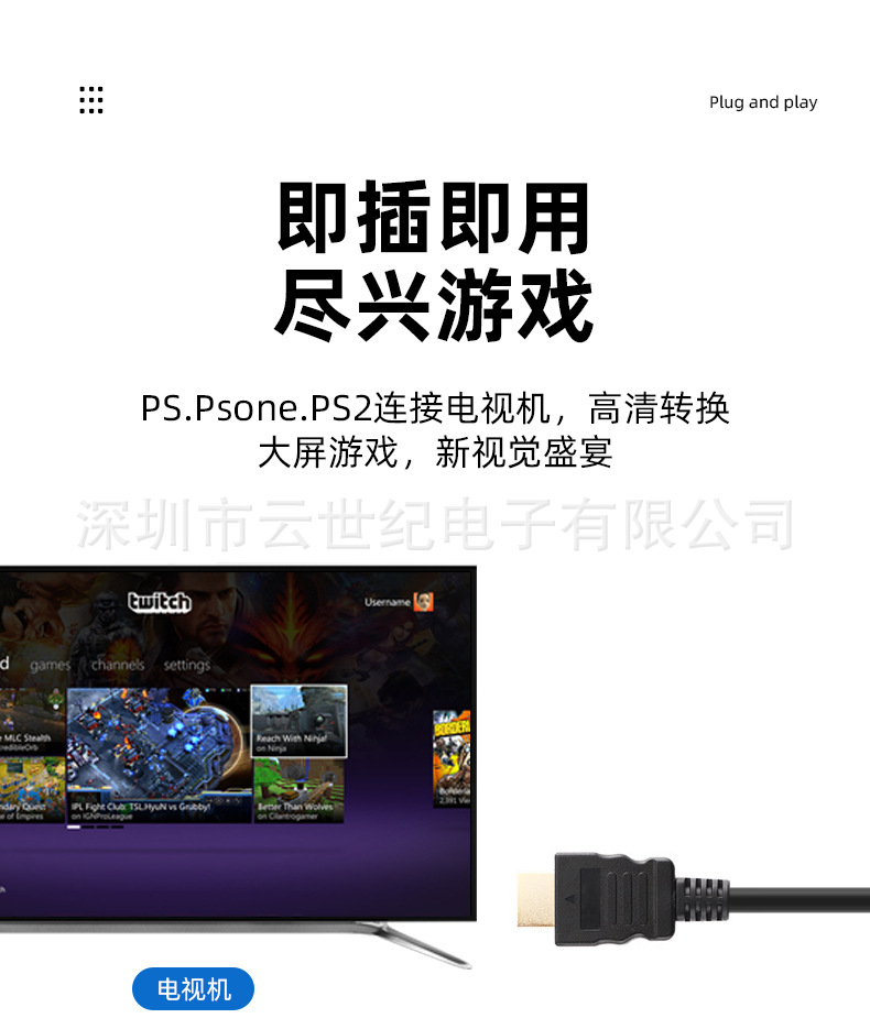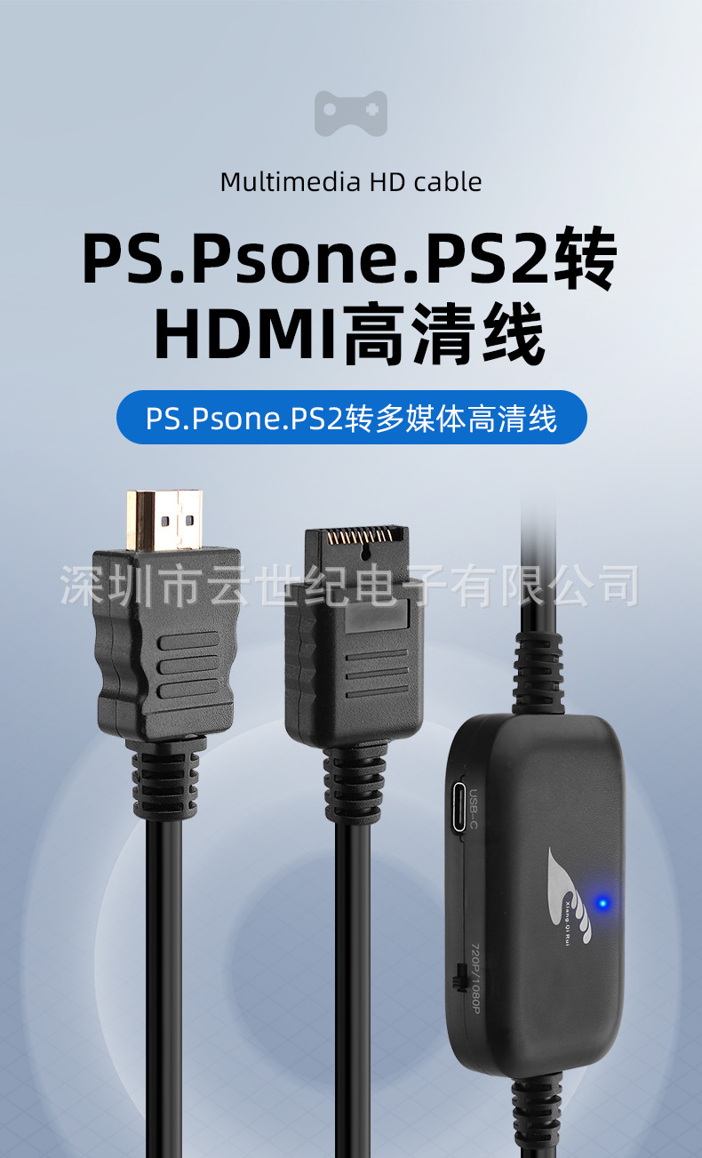 工場直販 高品質 PS.Psone.PS2 to HDMI 高画質ケーブル ブラック(1080P)