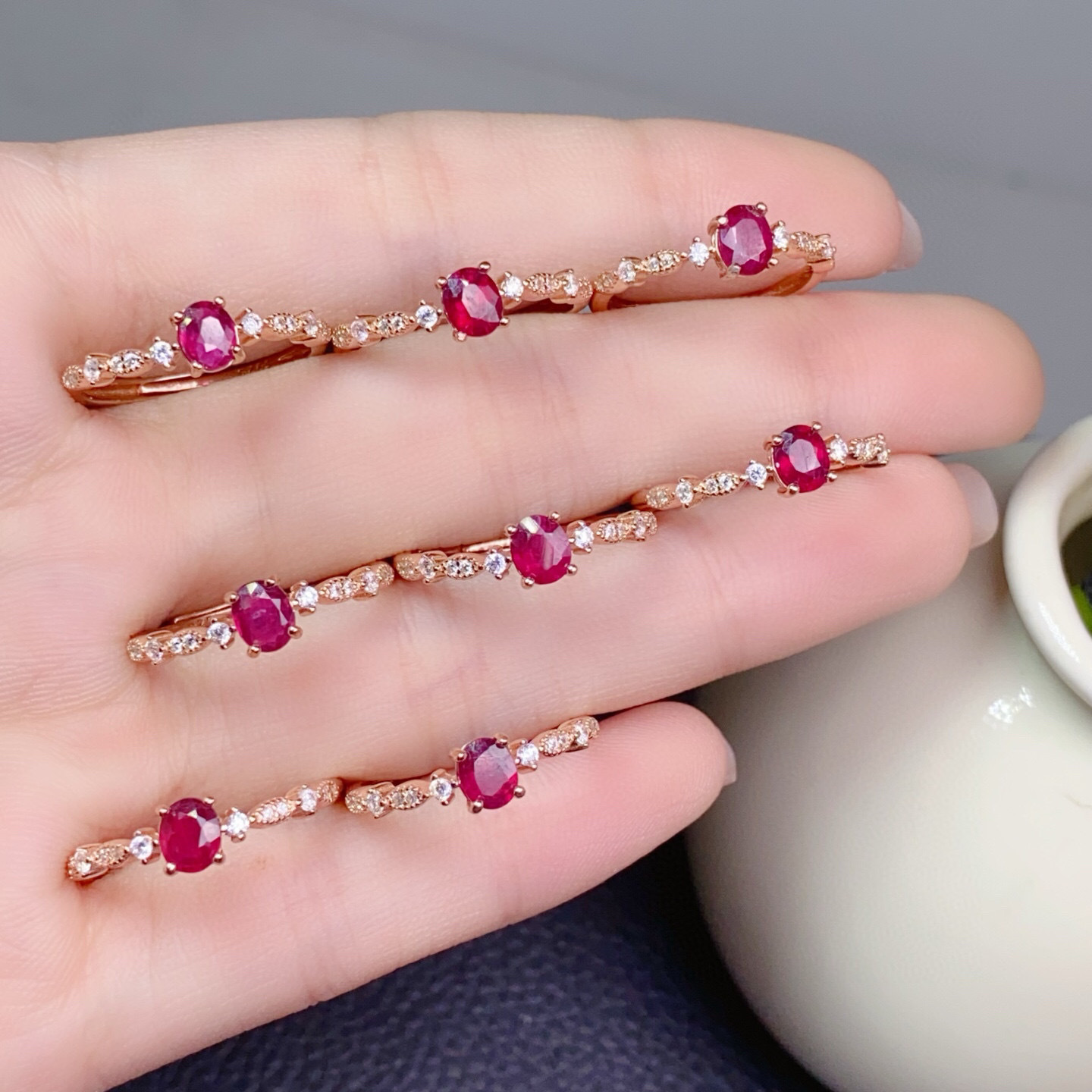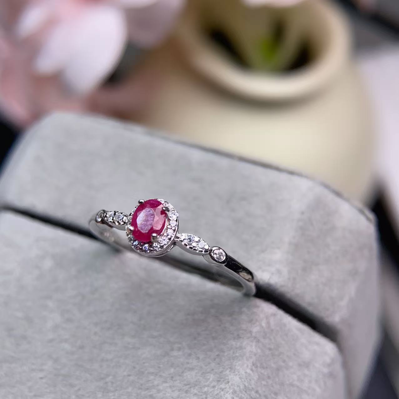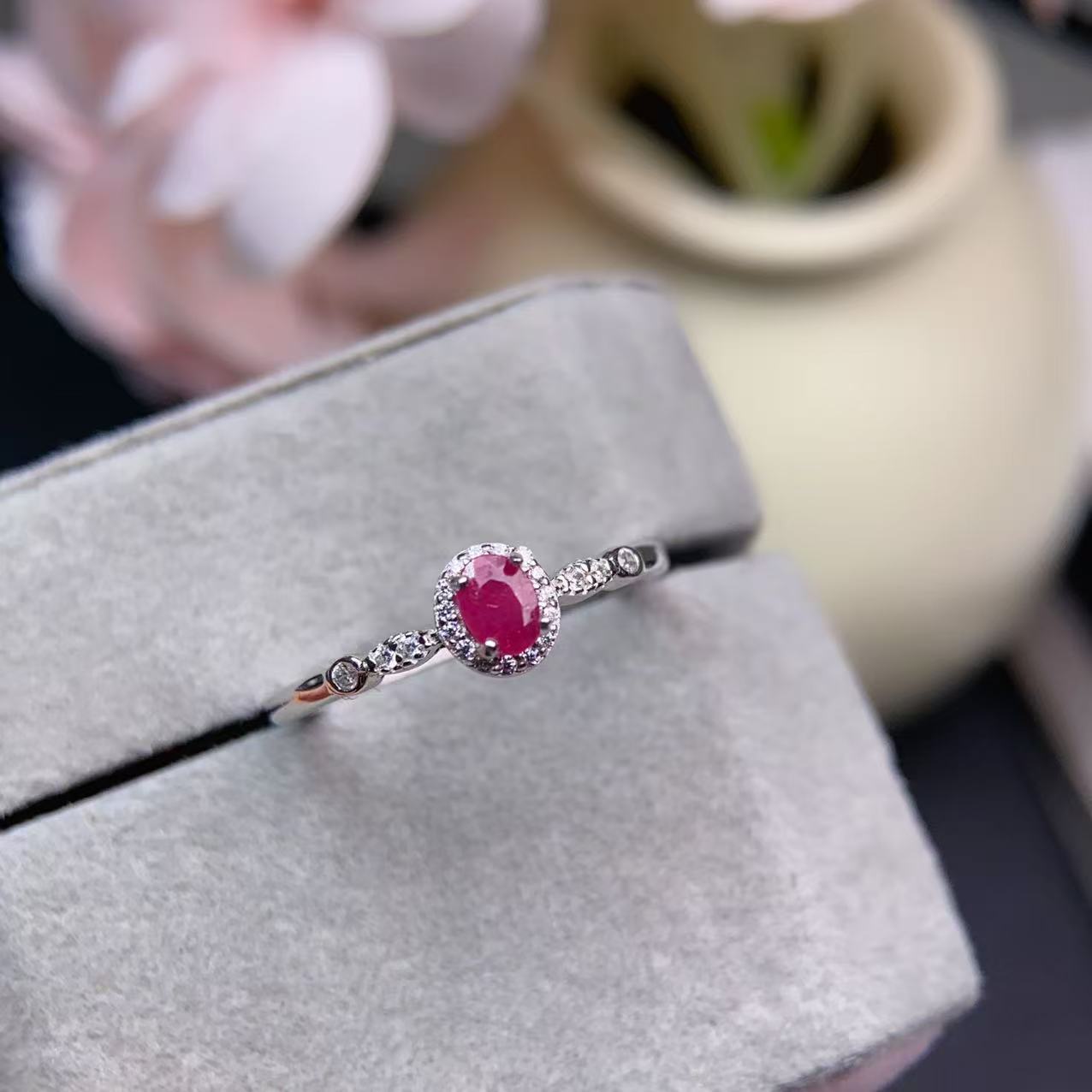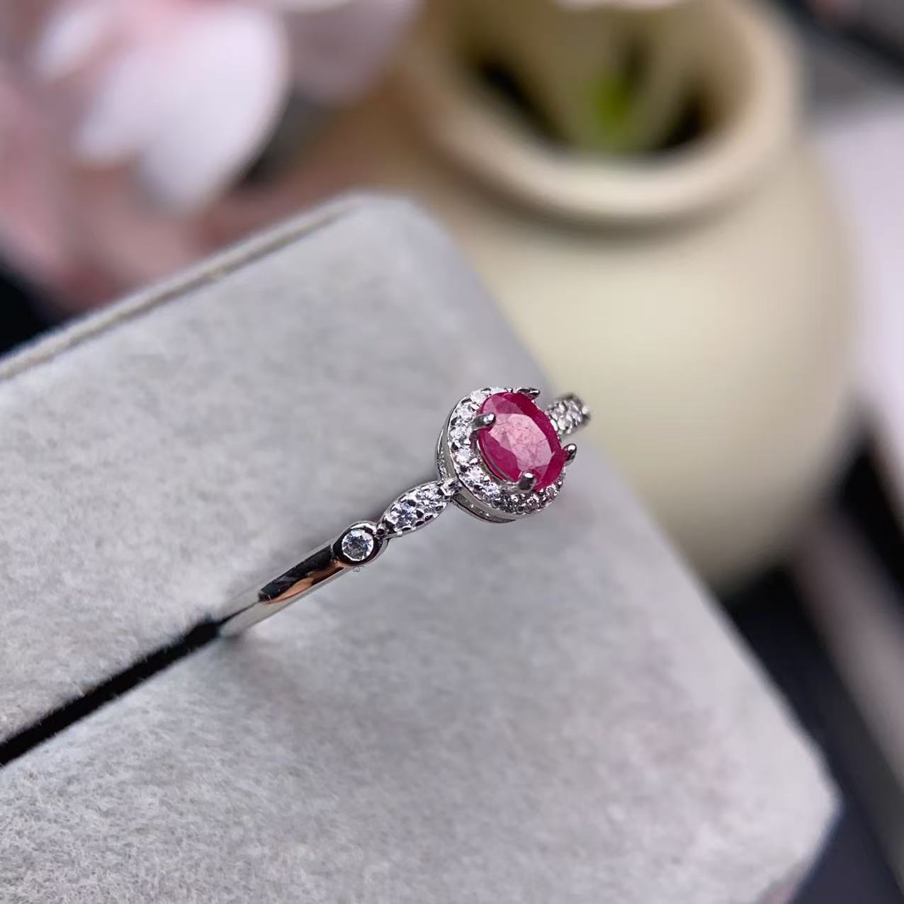 高品质天然红宝石戒指💍 晶体通透,红宝石艳如烈火,让人们拥有热情,拥有爱💓如火🔥般给人以希望,有着意想不到的魔力,戒面3*4mm,925银精工镶嵌,💰95/枚