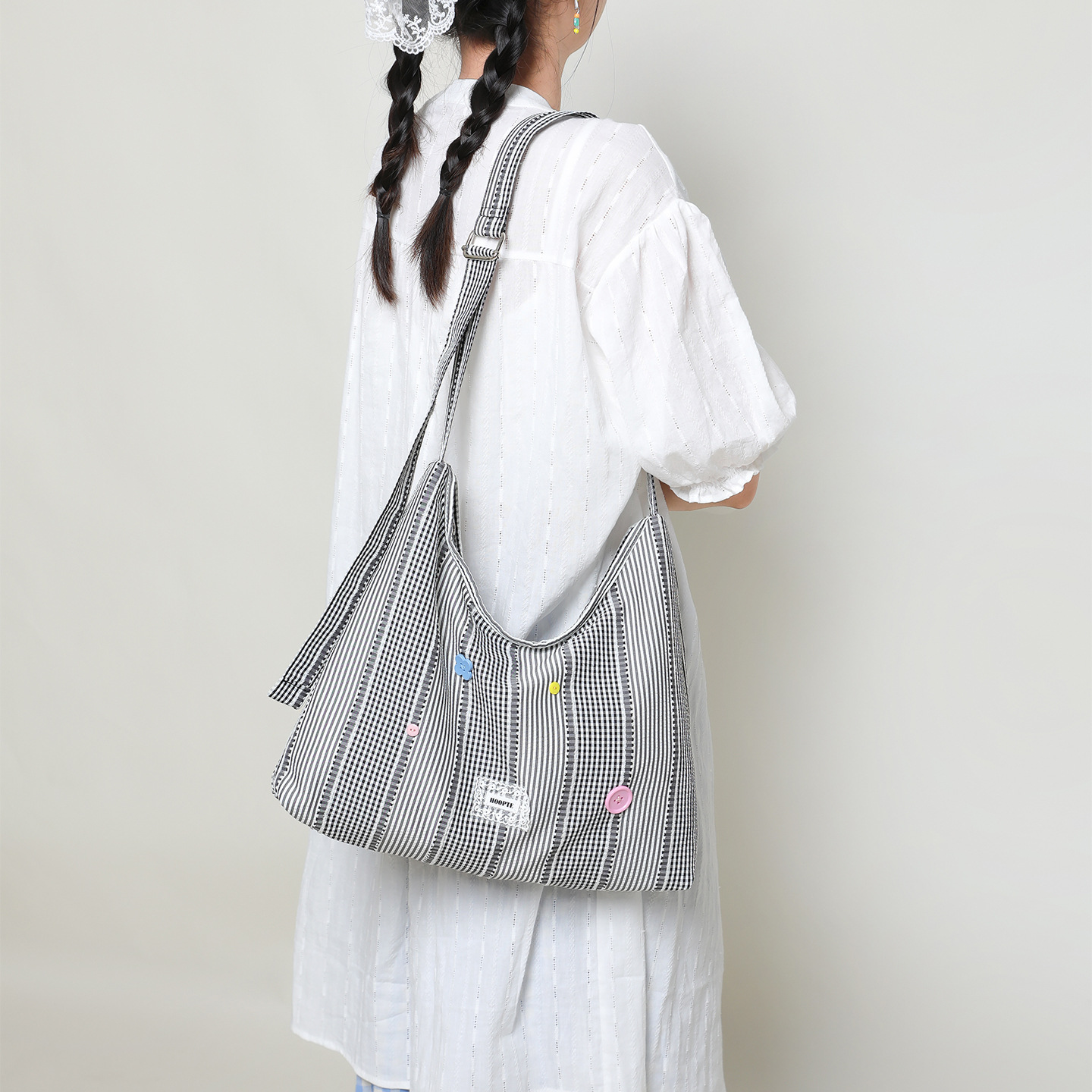 初秋キャンバスバッグ ドーパミンチェック柄ショルダーバッグ 韓国風インスタ風韓国布バッグ カジュアルガールズトートバッグ
