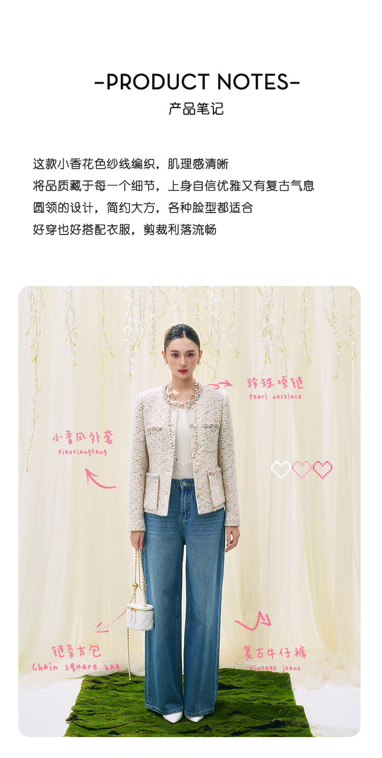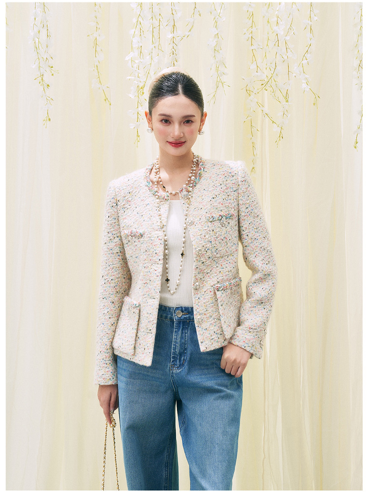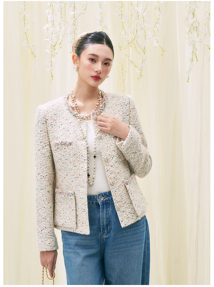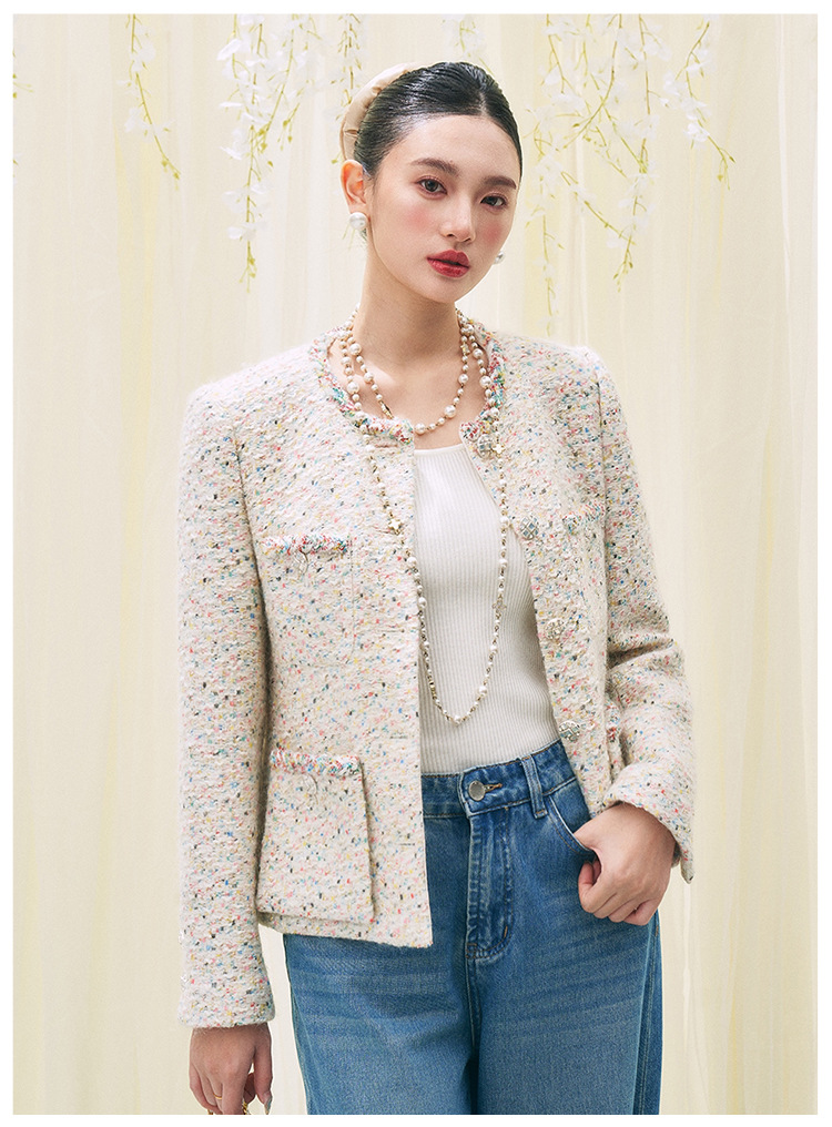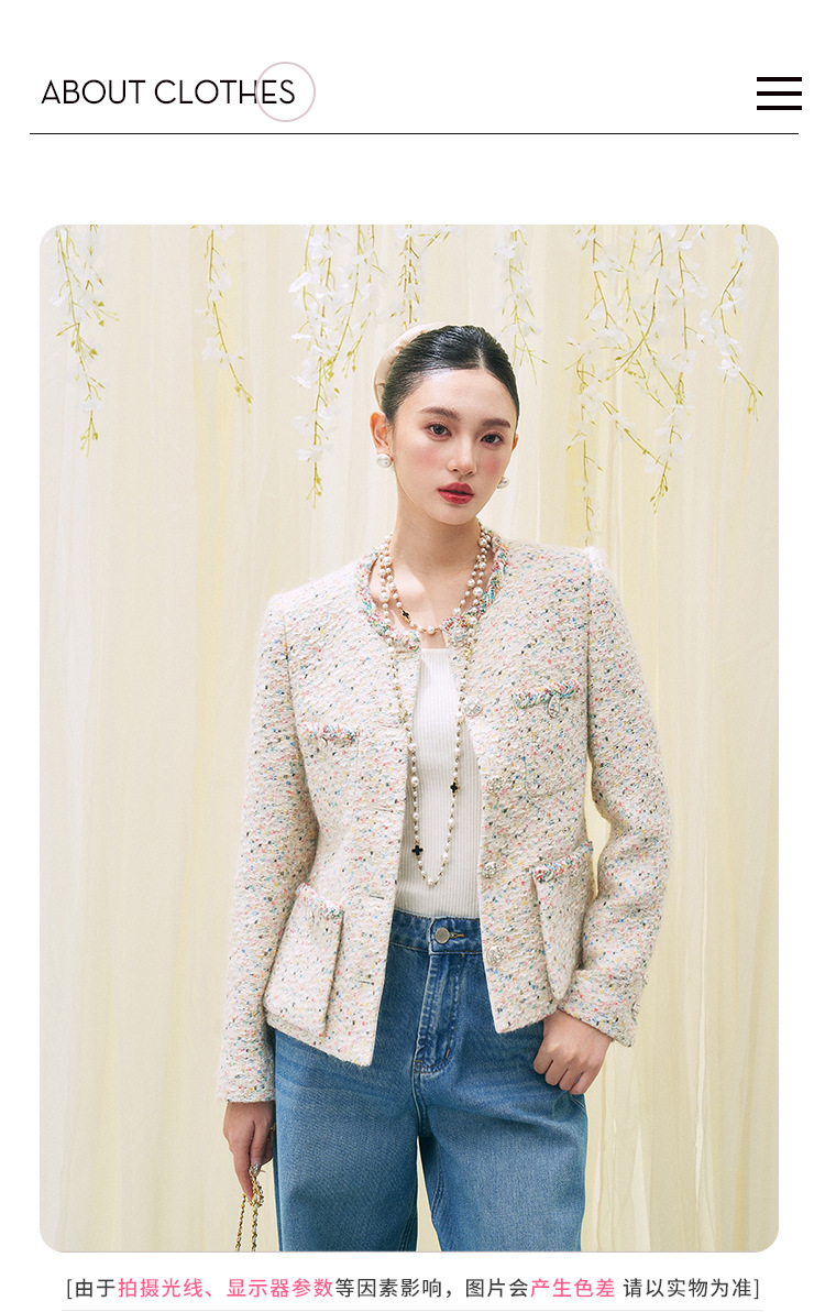 【盛都】26春新作 フレンチスタイル 高級感あふれるシャネル風 光沢のある織り込みツイード ショート丈ウールジャケット