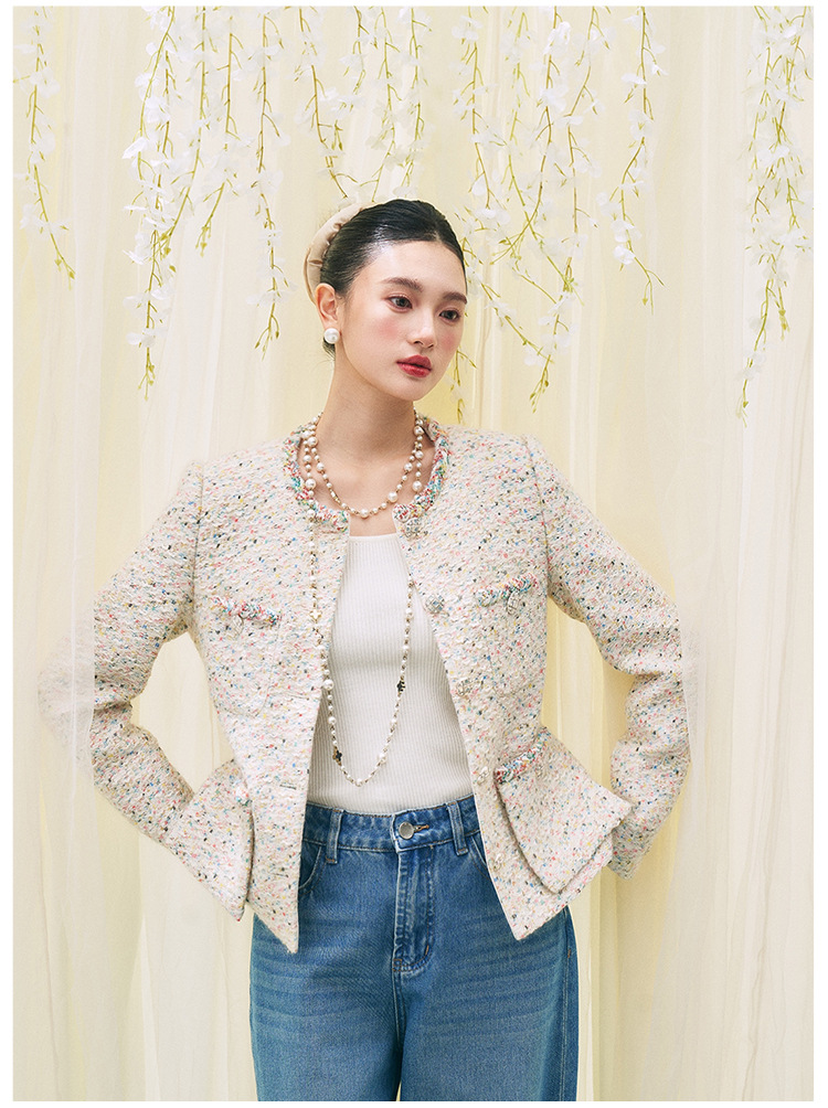 【盛都】25秋新作 フレンチレトロ風 ハイソープロフェッショナルスタイル フェスティバルビーズ装飾 インターネットセレブ風 ショート丈ジャケット