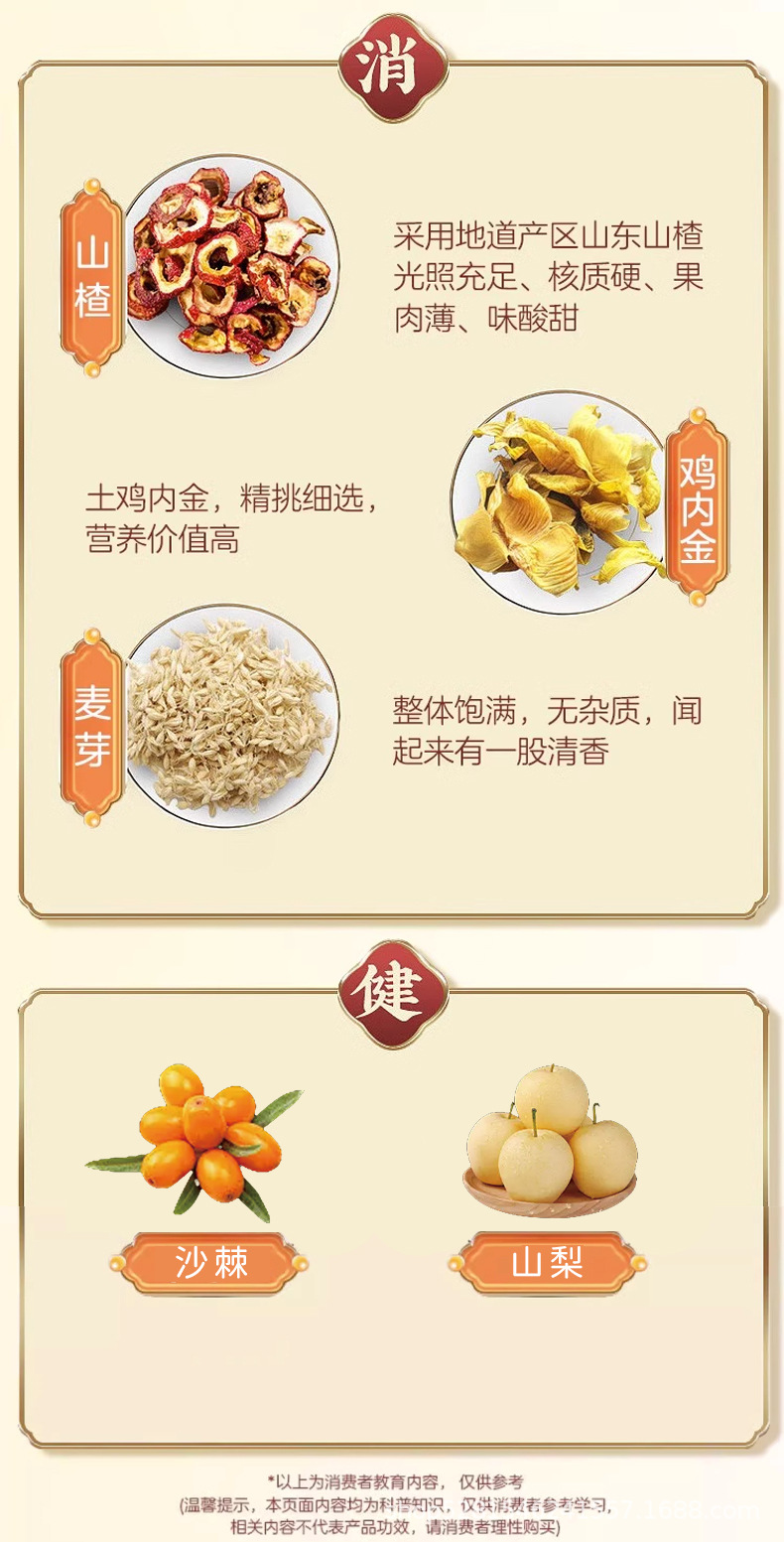 原材料と原材料 プレバイオティック、サンザシ、チキンナゲット