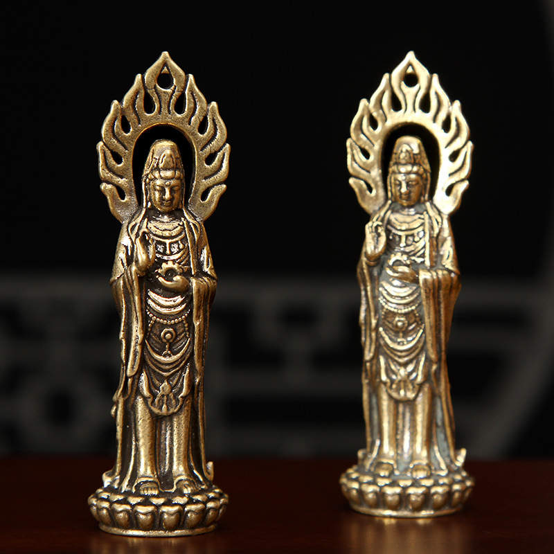観音菩薩神像置物真鍮南海観世音仏像銅像オフィスデスクトップ祈祷装飾置物