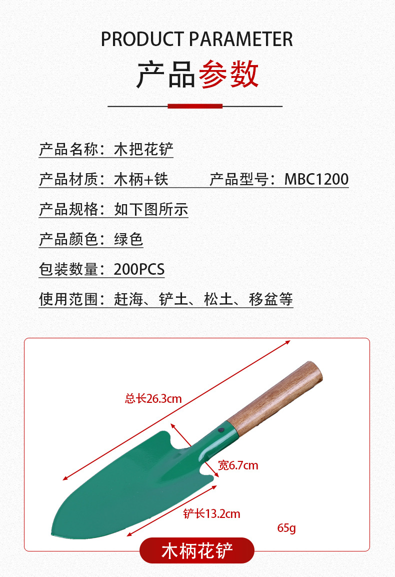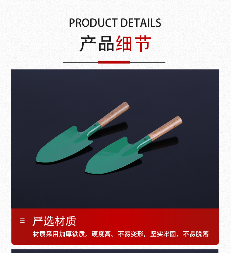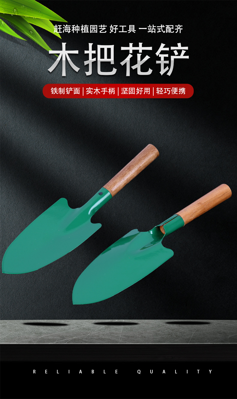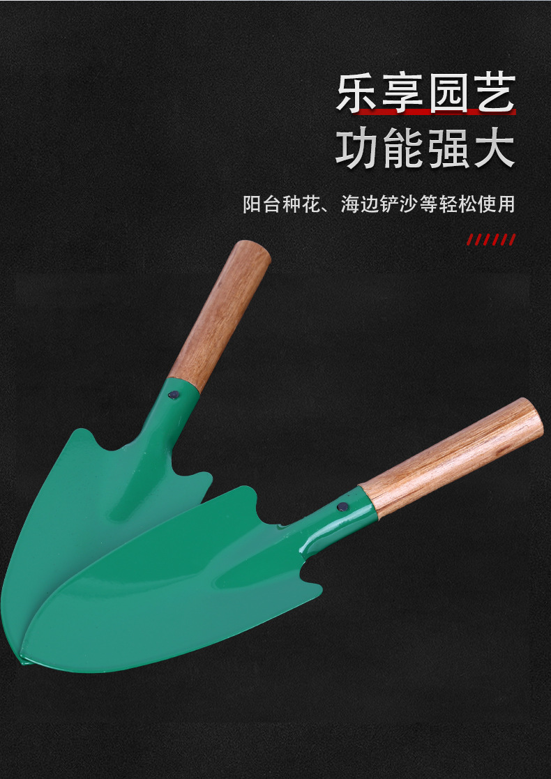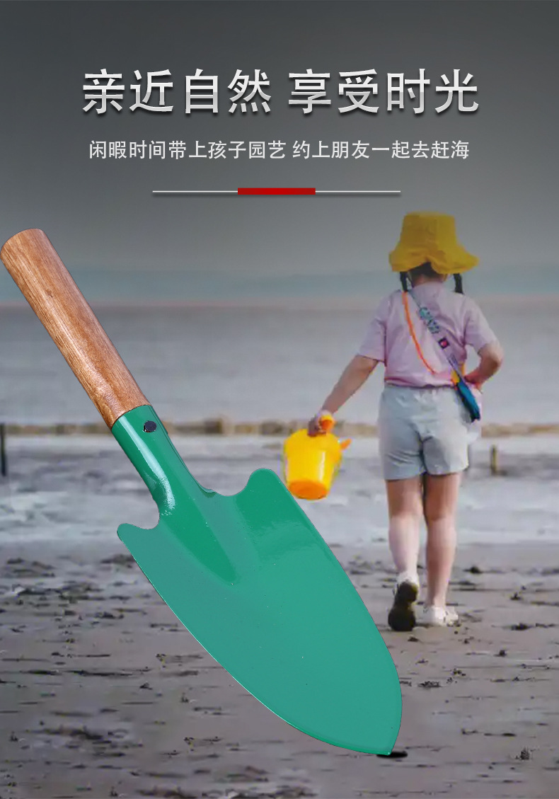 花菜植え用の小さなシャベル、山菜掘り用の鉄製屋外掘削ツール、木製ハンドルの園芸ツール、海で砂を掘るための特別なシャベル