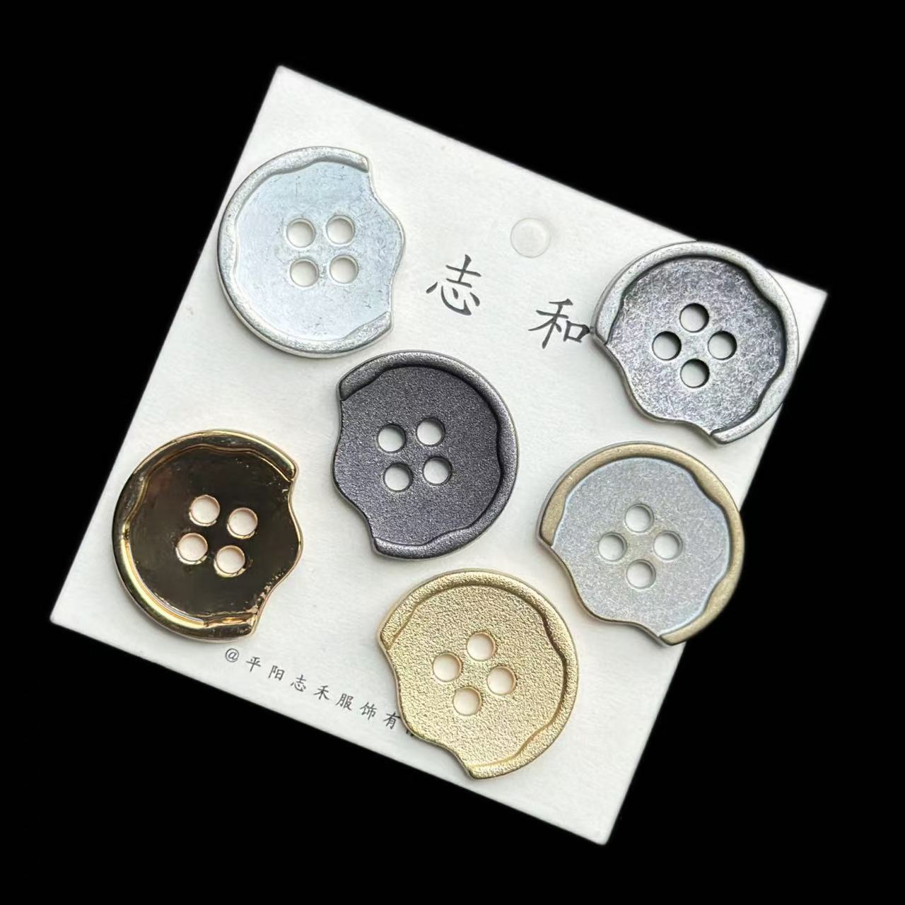 不规则な2目のレトロなシャツの金属のボタンは古い感の强いスーツのウインドブレーカーのコートをして金属のボタンを饰ります。