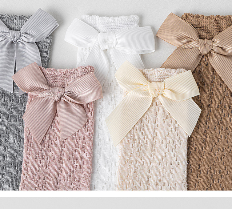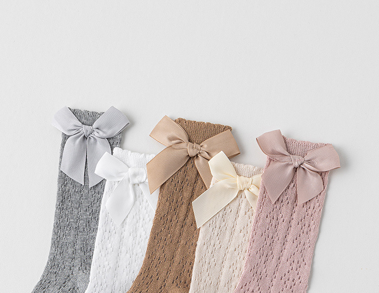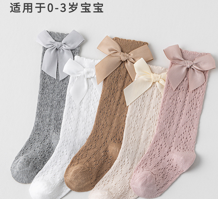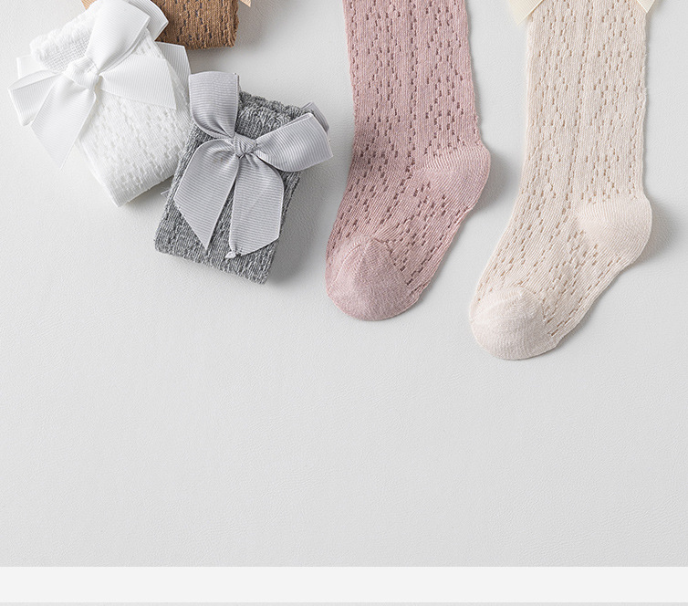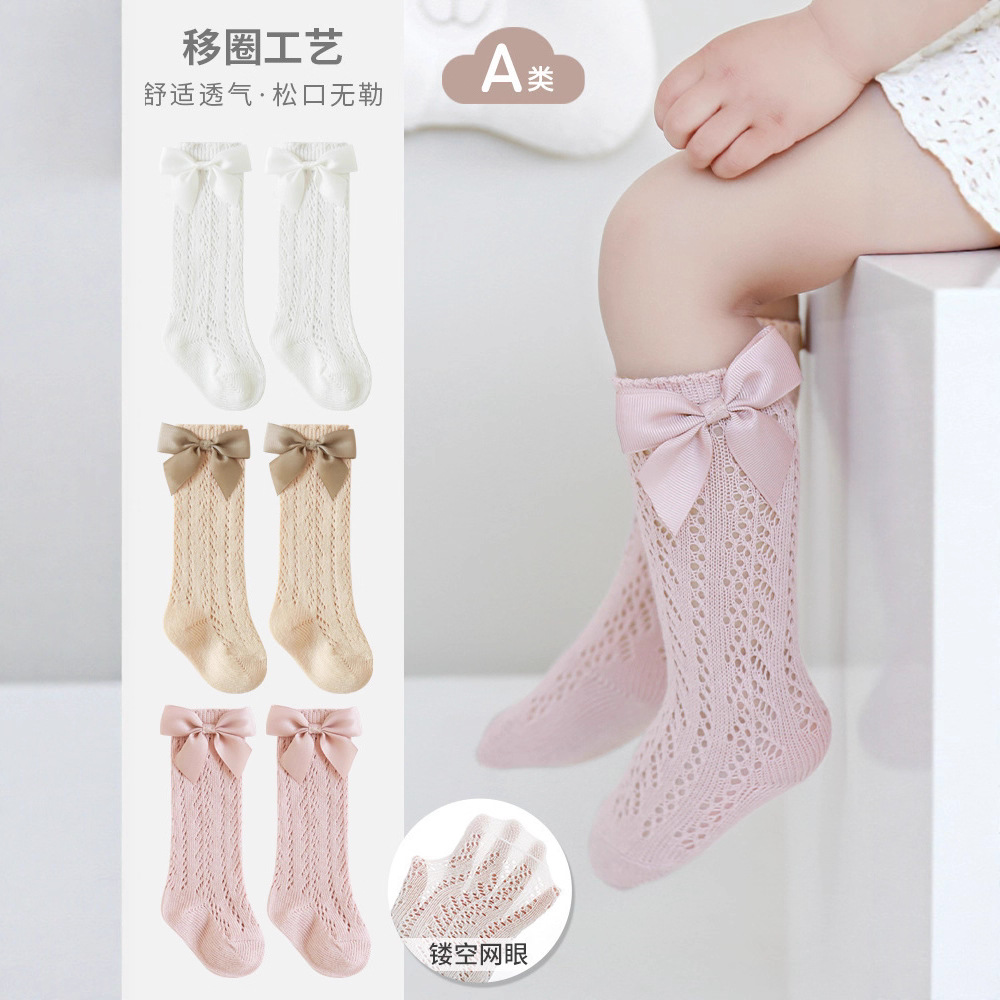 ベビーハイソックス春夏メッシュ韓国版蝶結びプリンセスソックス通気性の薄い口の子供ストッキング卸売り