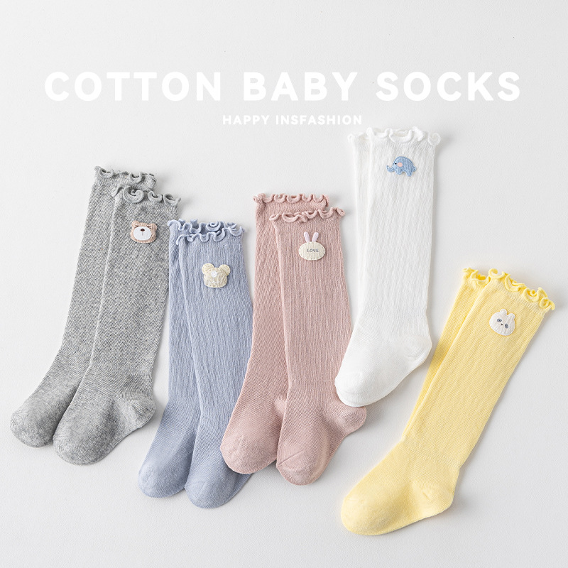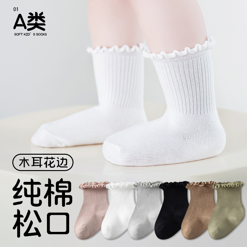 新生児、新生児、0-1-3歳、クラスA綿春秋夏木耳レースルーズ韓国風ミッドカーフソックス