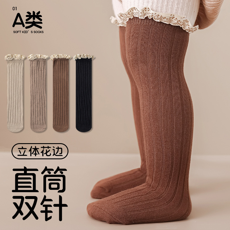 新入生の男女の赤ちゃんの乳幼児a類春秋冬の新商品の子供は膝のレースのまっすぐな筒の靴下のかかとの長さがありません。