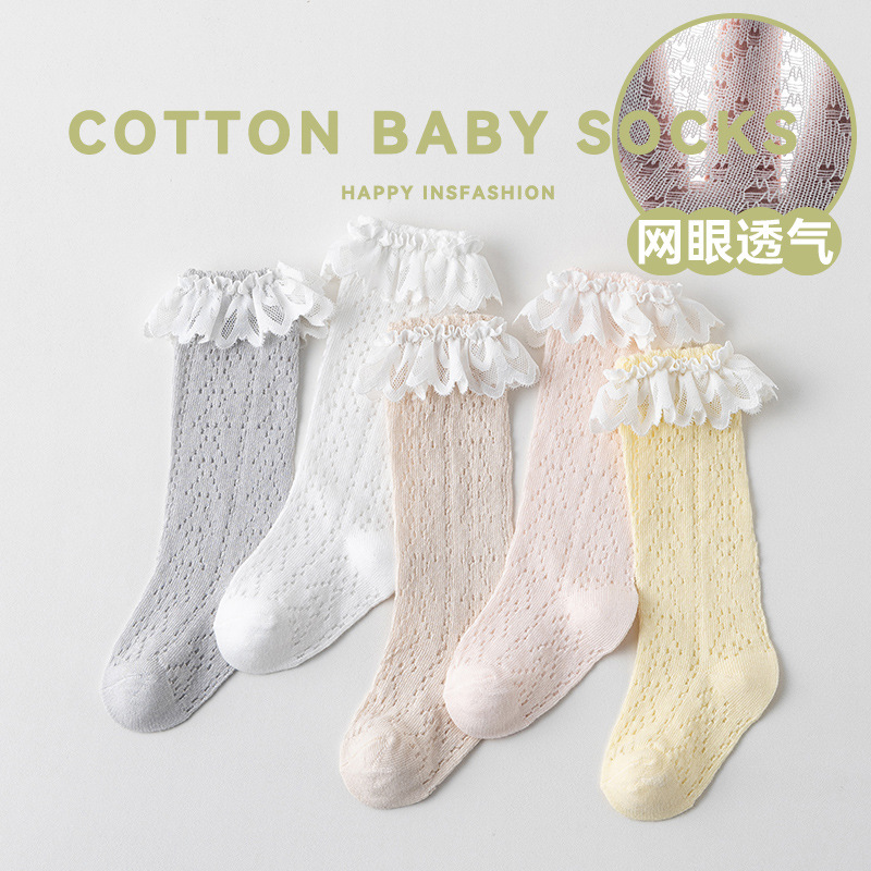 新生児 0-1-3 歳の女の子の赤ちゃん夏薄いレース防蚊メッシュ通気性ロングソックス